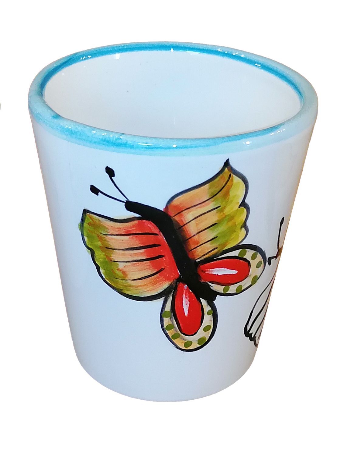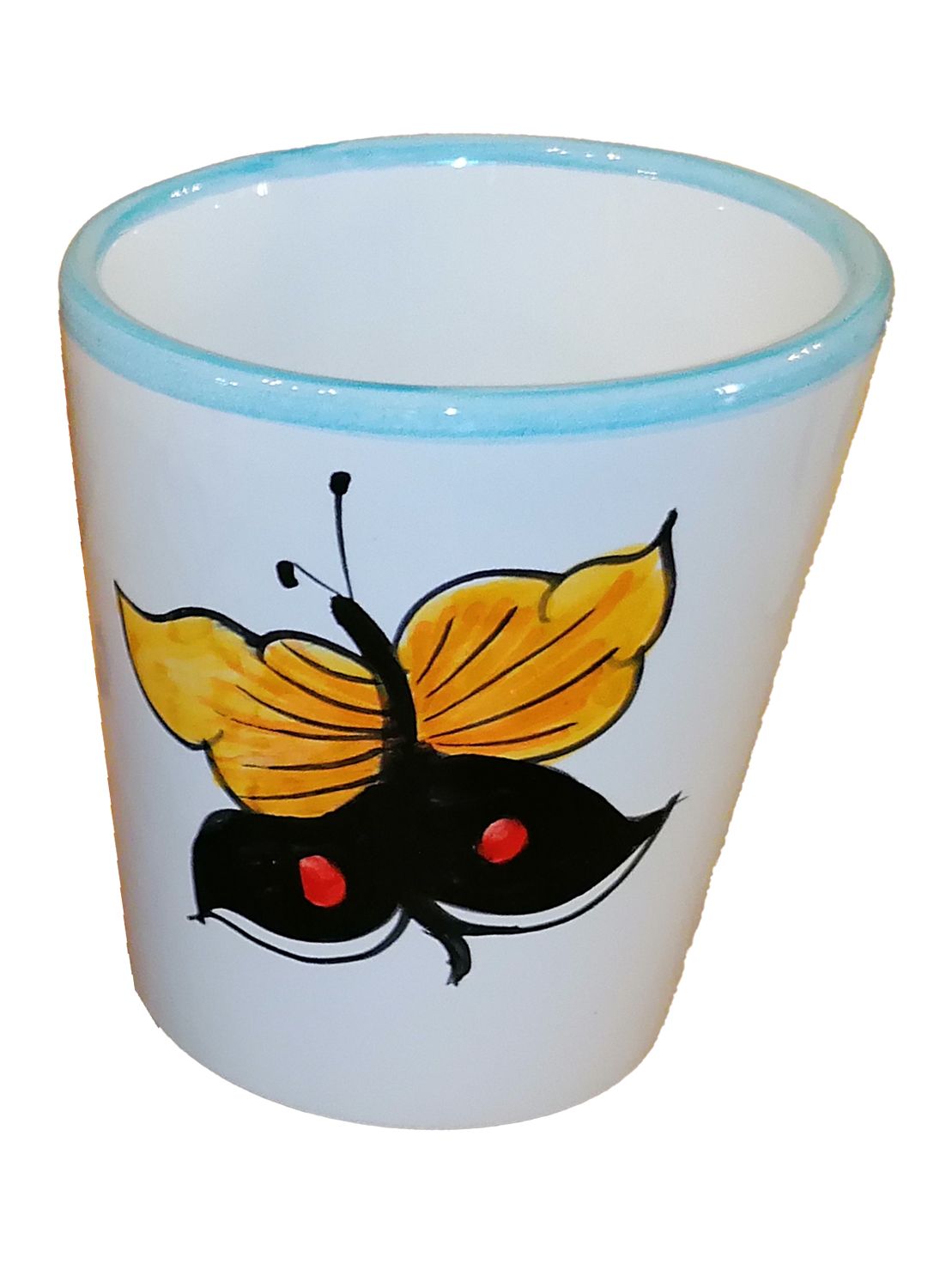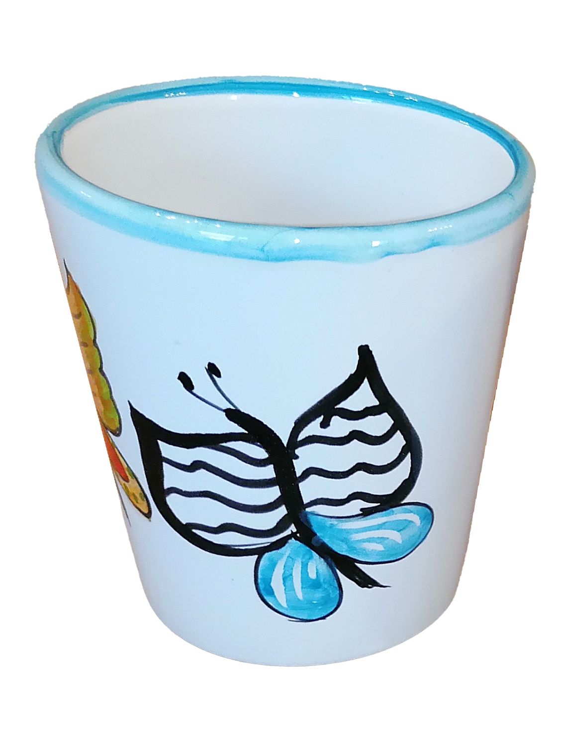 Bicchiere. Linea Farfalle. Ceramica vietrese. Dipinta a mano