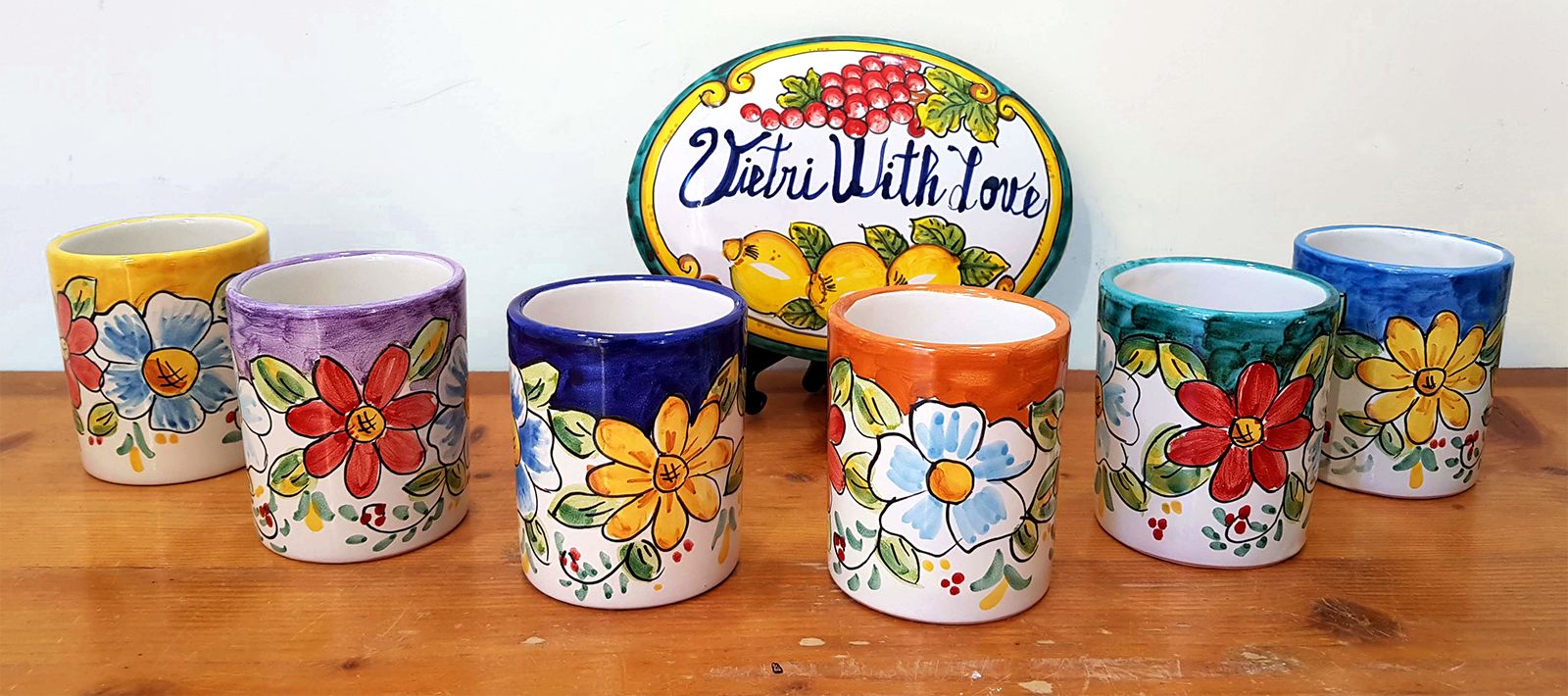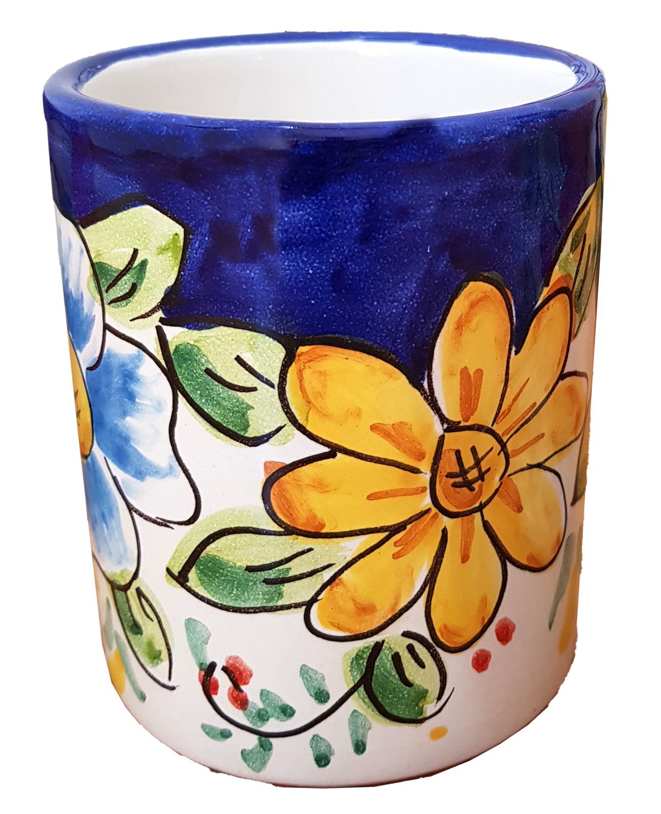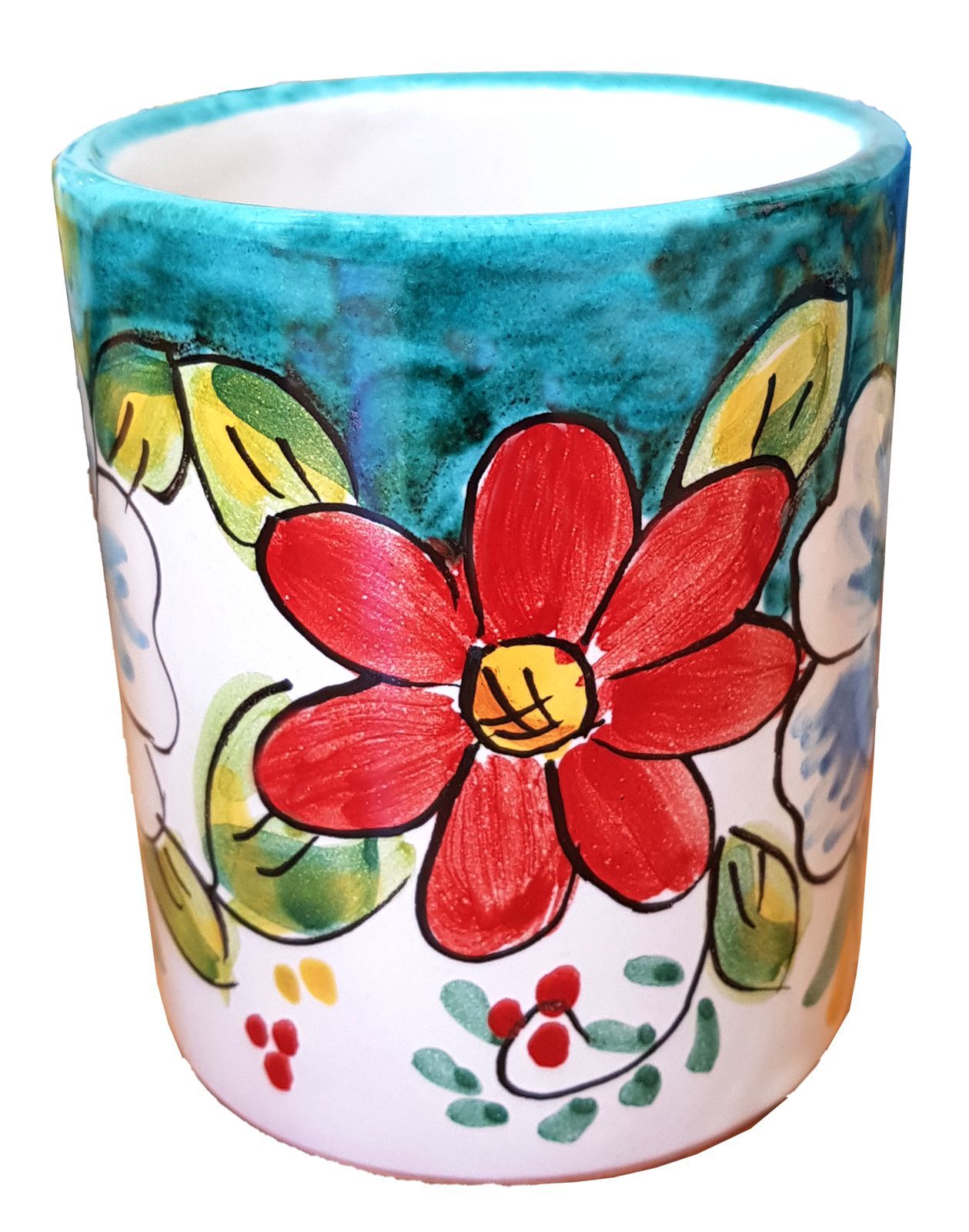 Bicchiere. Linea Fiori. Ceramica vietrese. Dipinta a mano