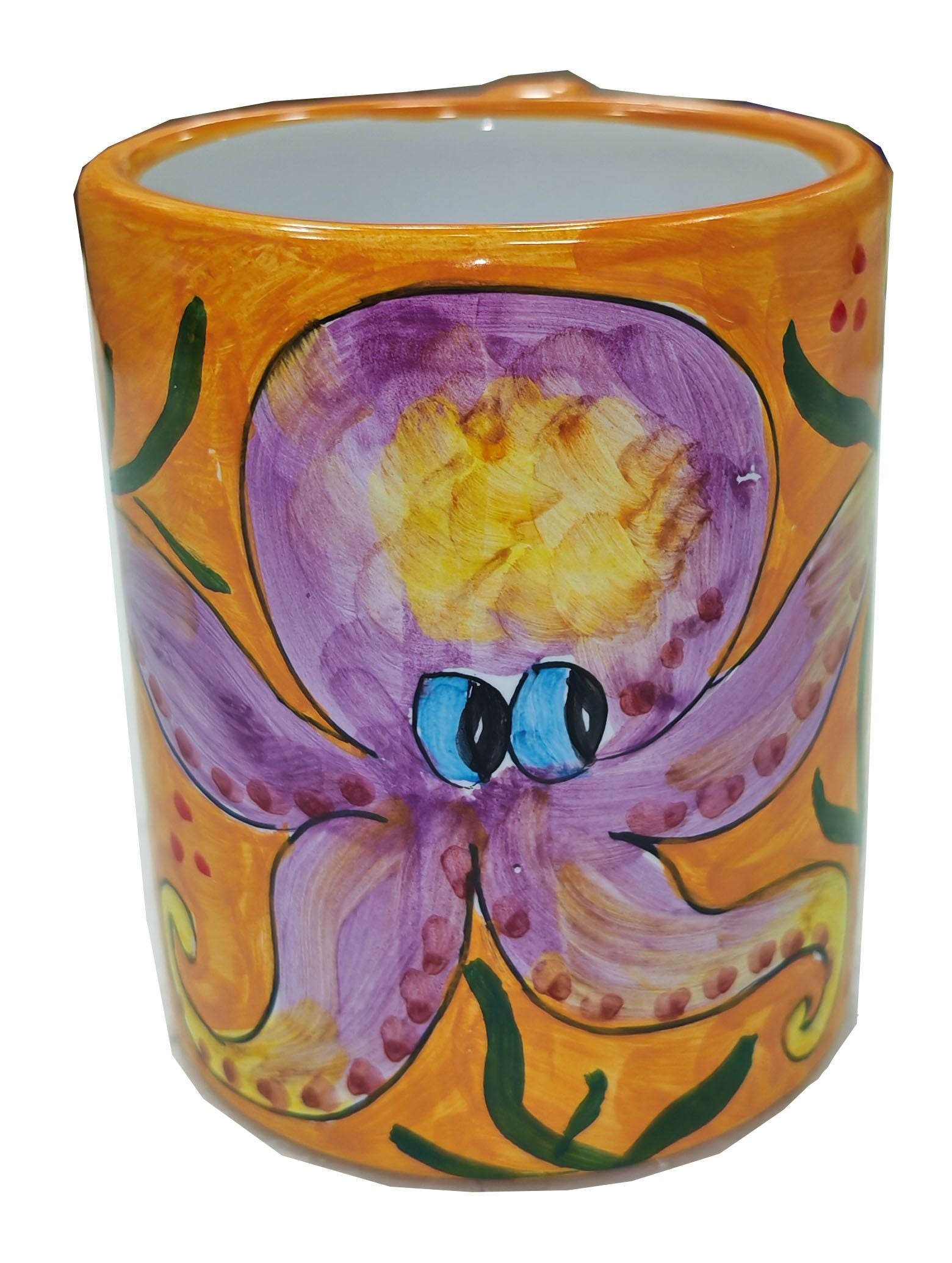 Realizzato con ceramica di Vietri di altissima qualità e interamente dipinto a mano da maestri artigiani che custodiscono da generazioni la tradizione ceramica della Costiera Amalfitana, questo bicchiere unisce eleganza e funzionalità in un unico oggetto.