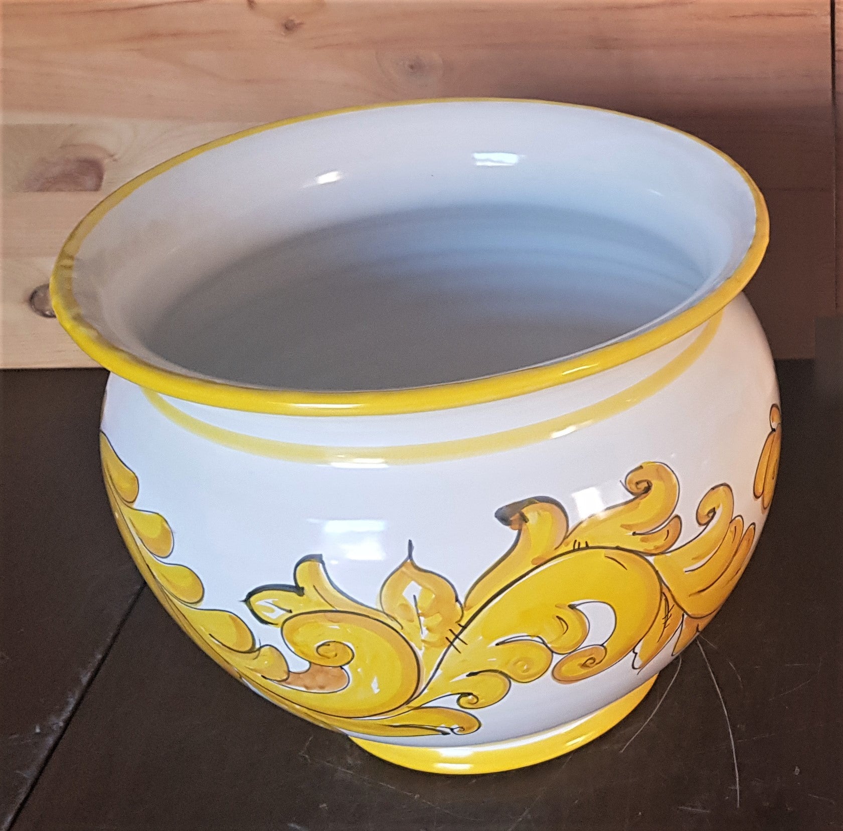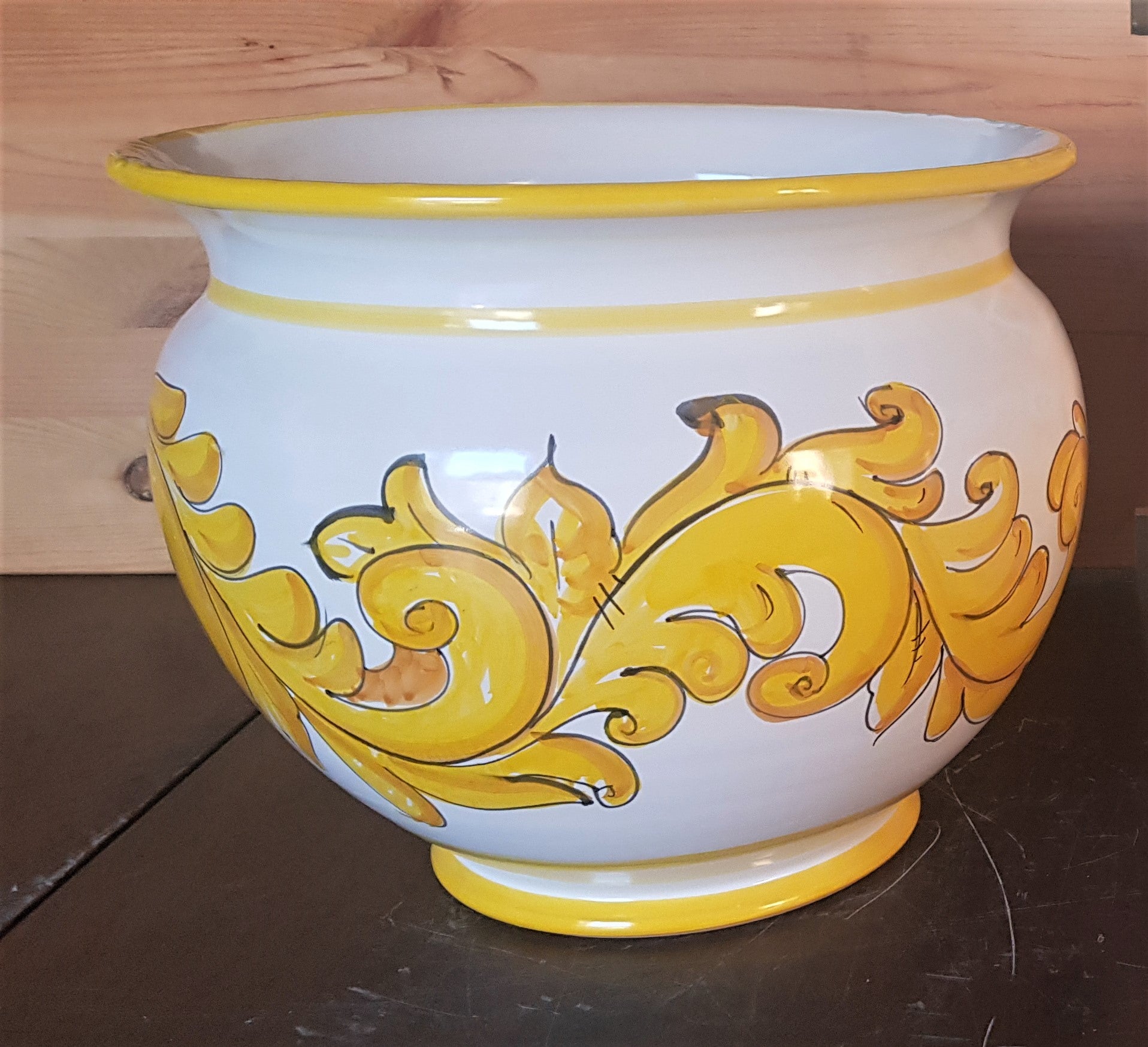 Cachepot Portapianta linea barocco fondo bianco. Ceramica di Vietri dipinta a mano.