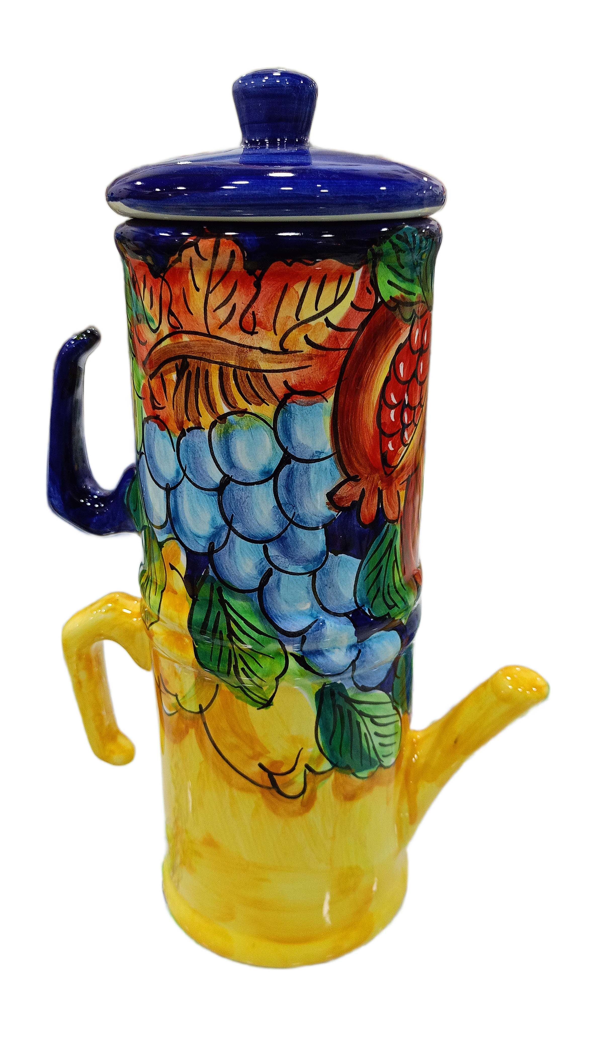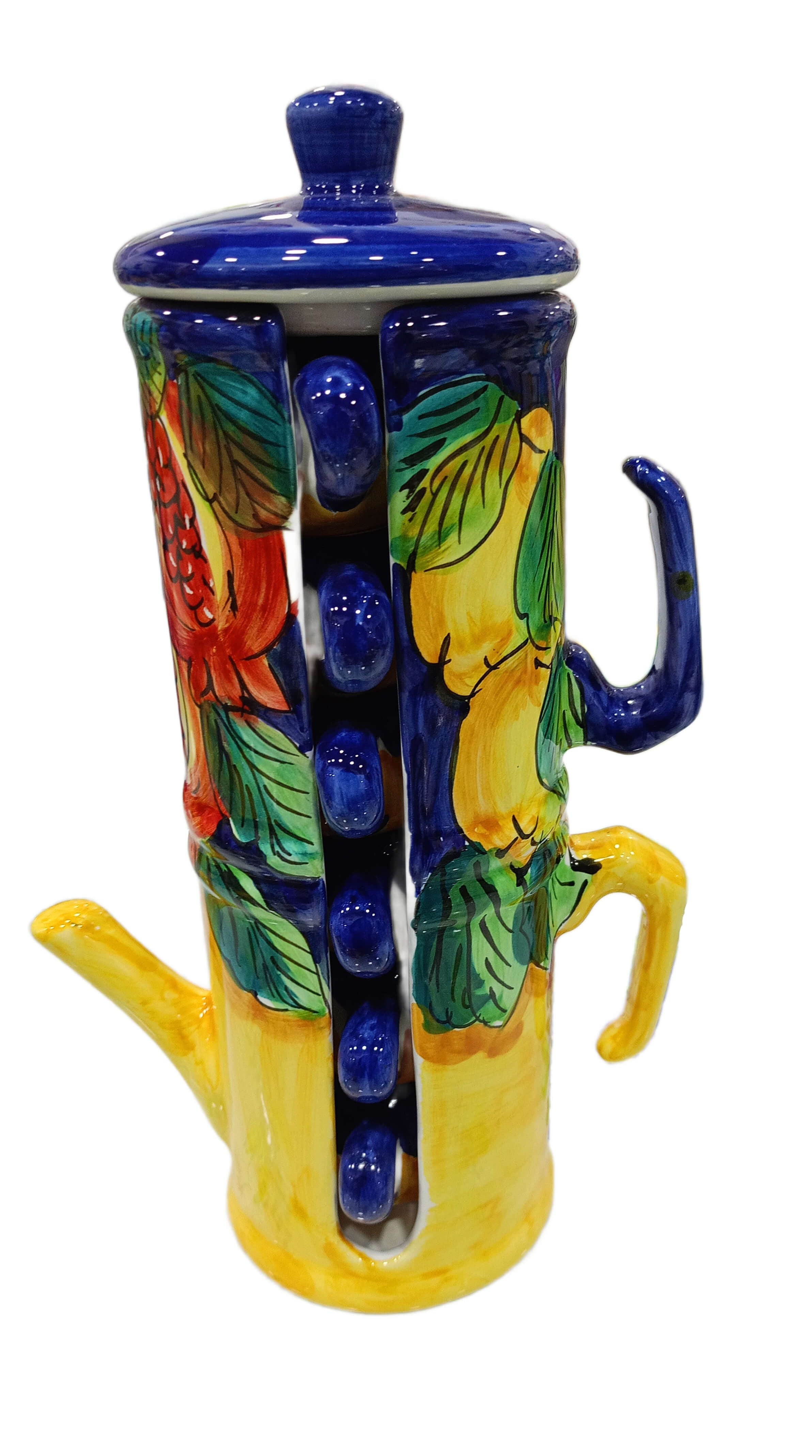 Bomboniera Caffettiera porta tazzine da caffè. Linea Frutta. Ceramica di Vietri. Dipinto a mano