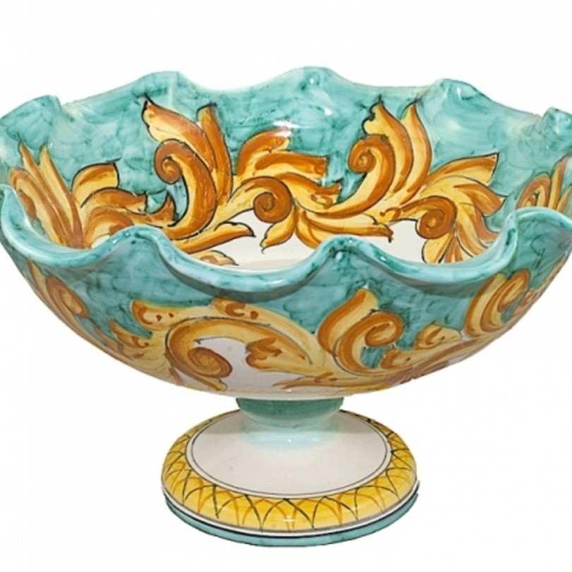 Alzata linea Barocco verde ramina- Centrotavola in Ceramica di Vietri dipinta a mano.