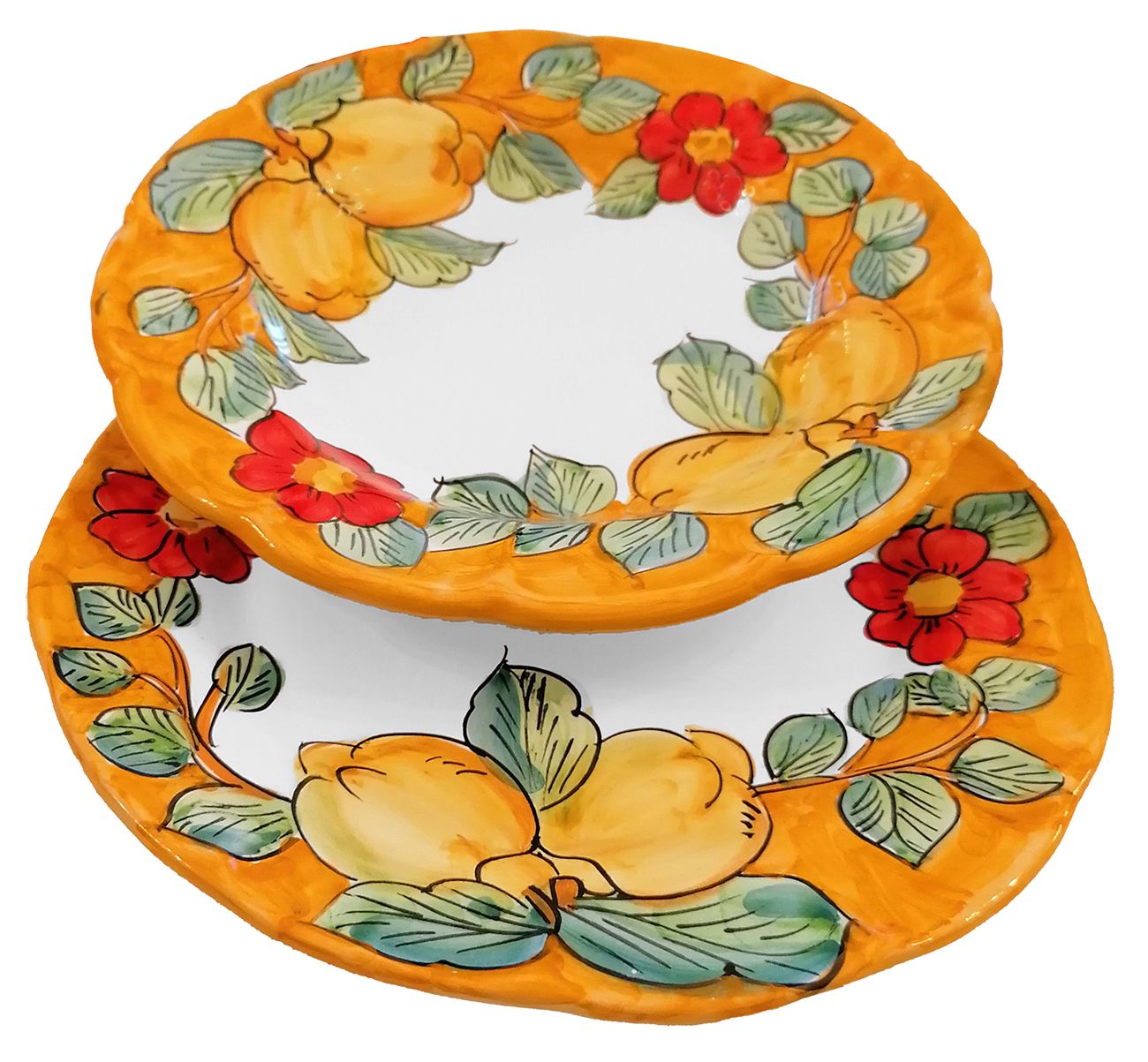 Plattenlinie Blumen und Zitronen. Handbemalte Vitri-Keramik. Encore-Fondsplan