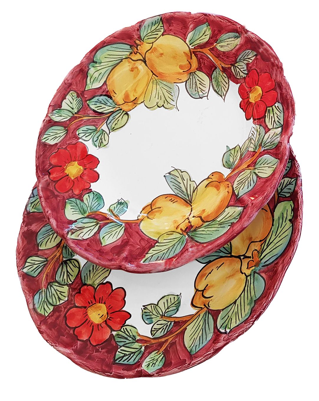 Plattenlinie Blumen und Zitronen. Handbemalte Vitri-Keramik. Zweiter Fondsplan