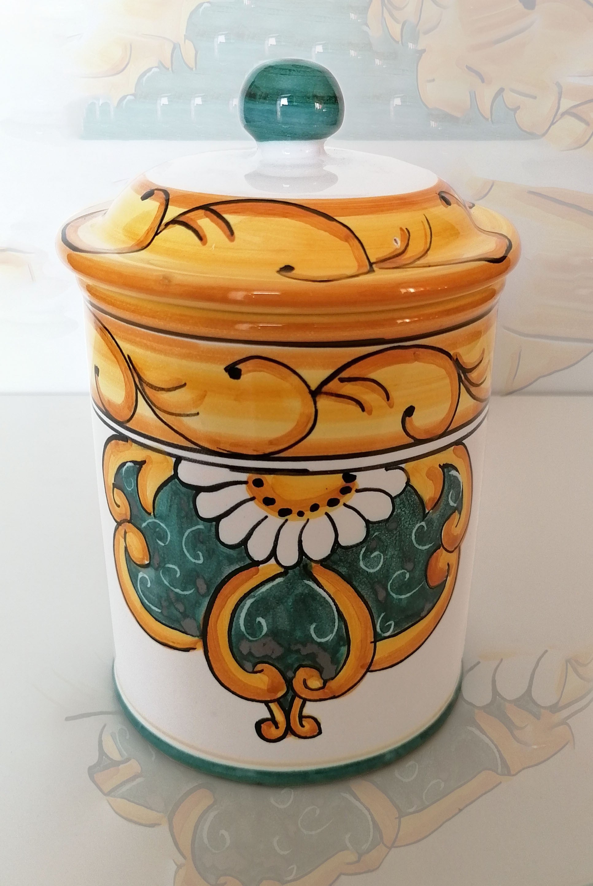 Barattolo Personalizzabile. porta spezie. linea barocco margherita. Ceramica di Vietri. Dipinta a mano.
