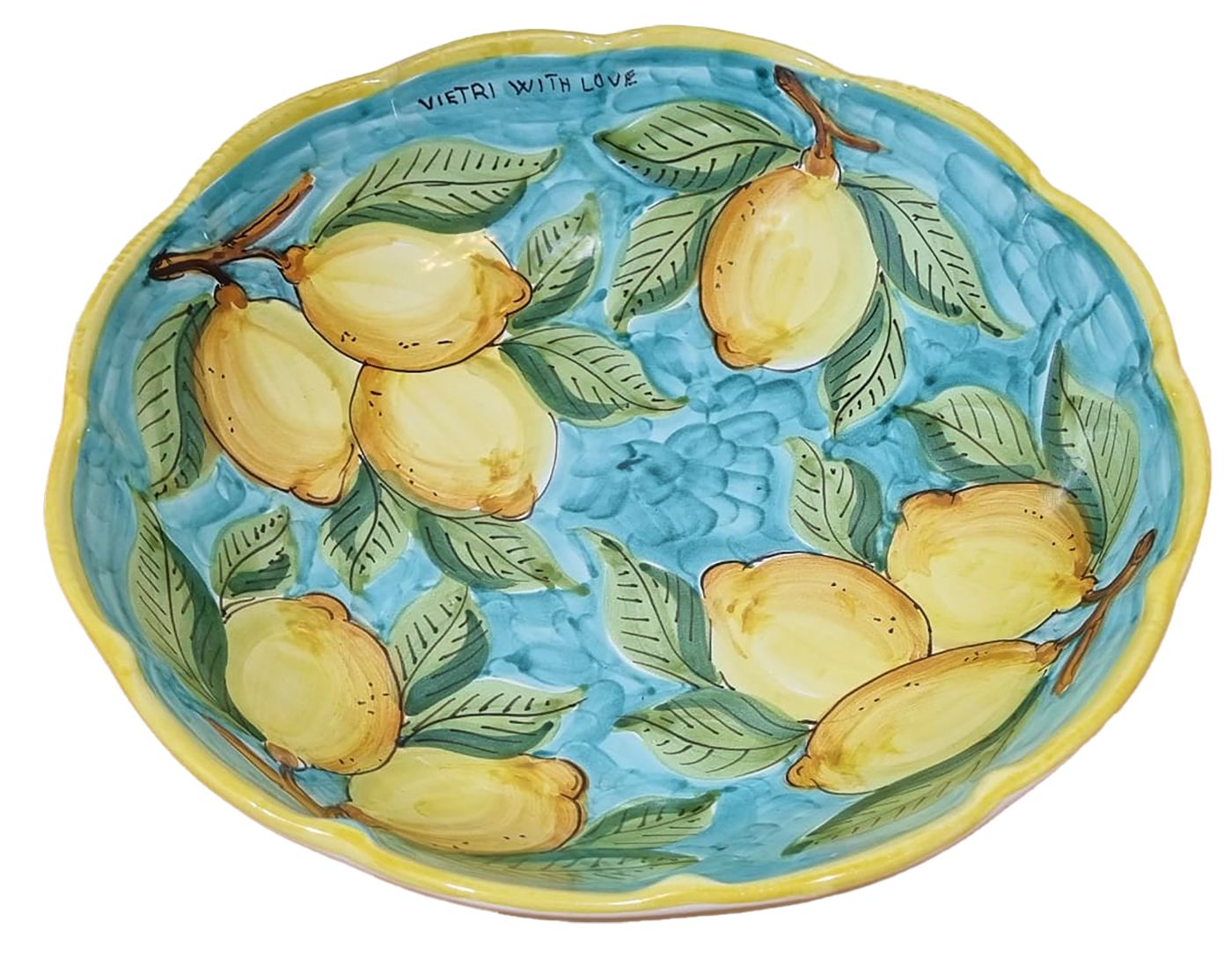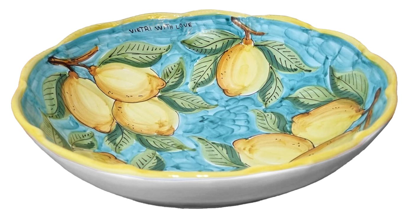 Coppa Insalatiera Smerlata linea Limoni. Ceramica di Vietri dipinta a mano