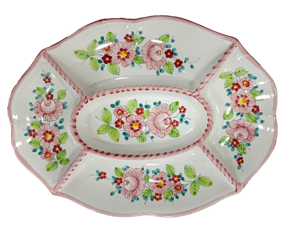Antipastiera Cena Fredda 5 scomparti linea Fiori. Ceramica di Vietri dipinta a mano