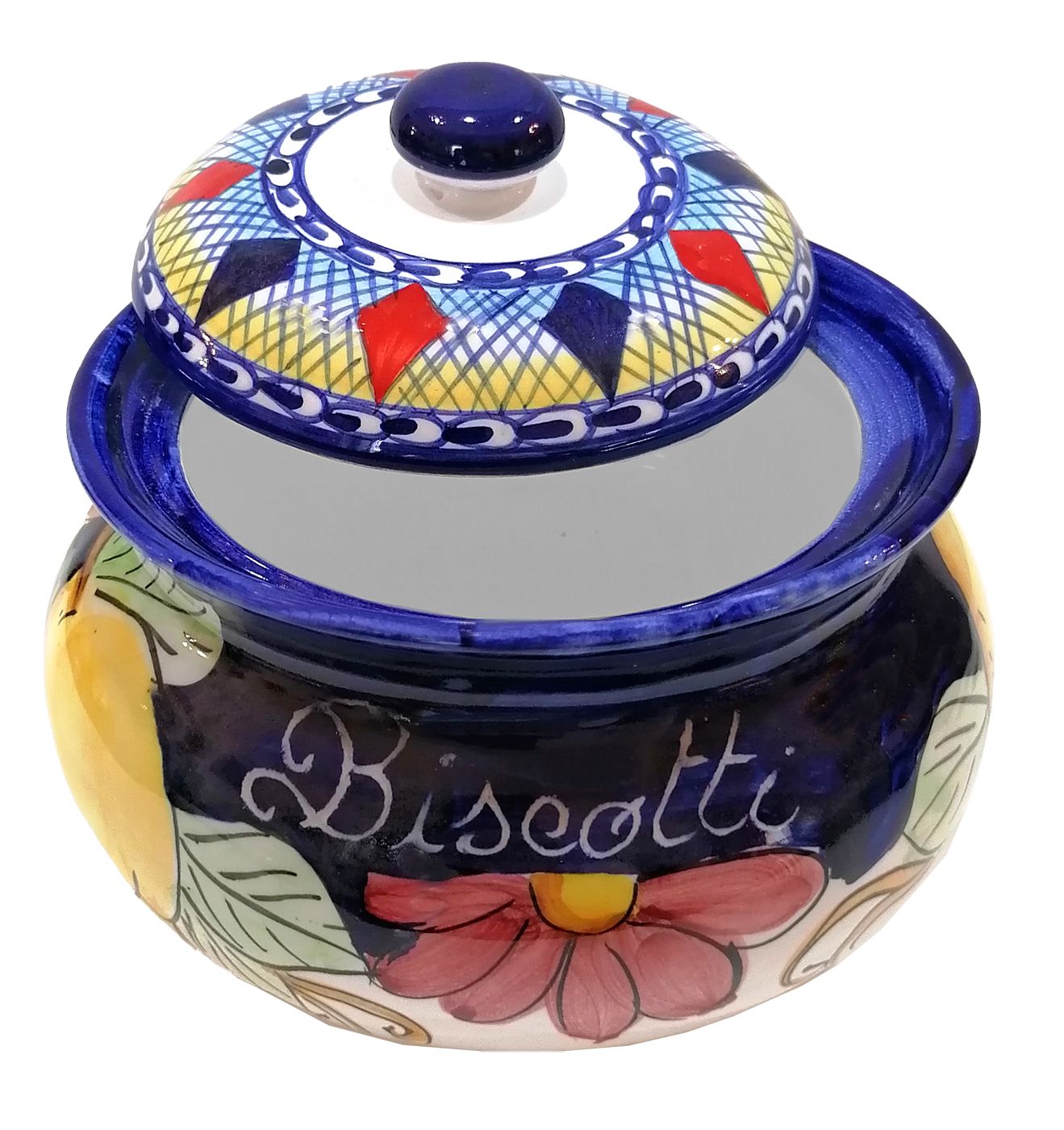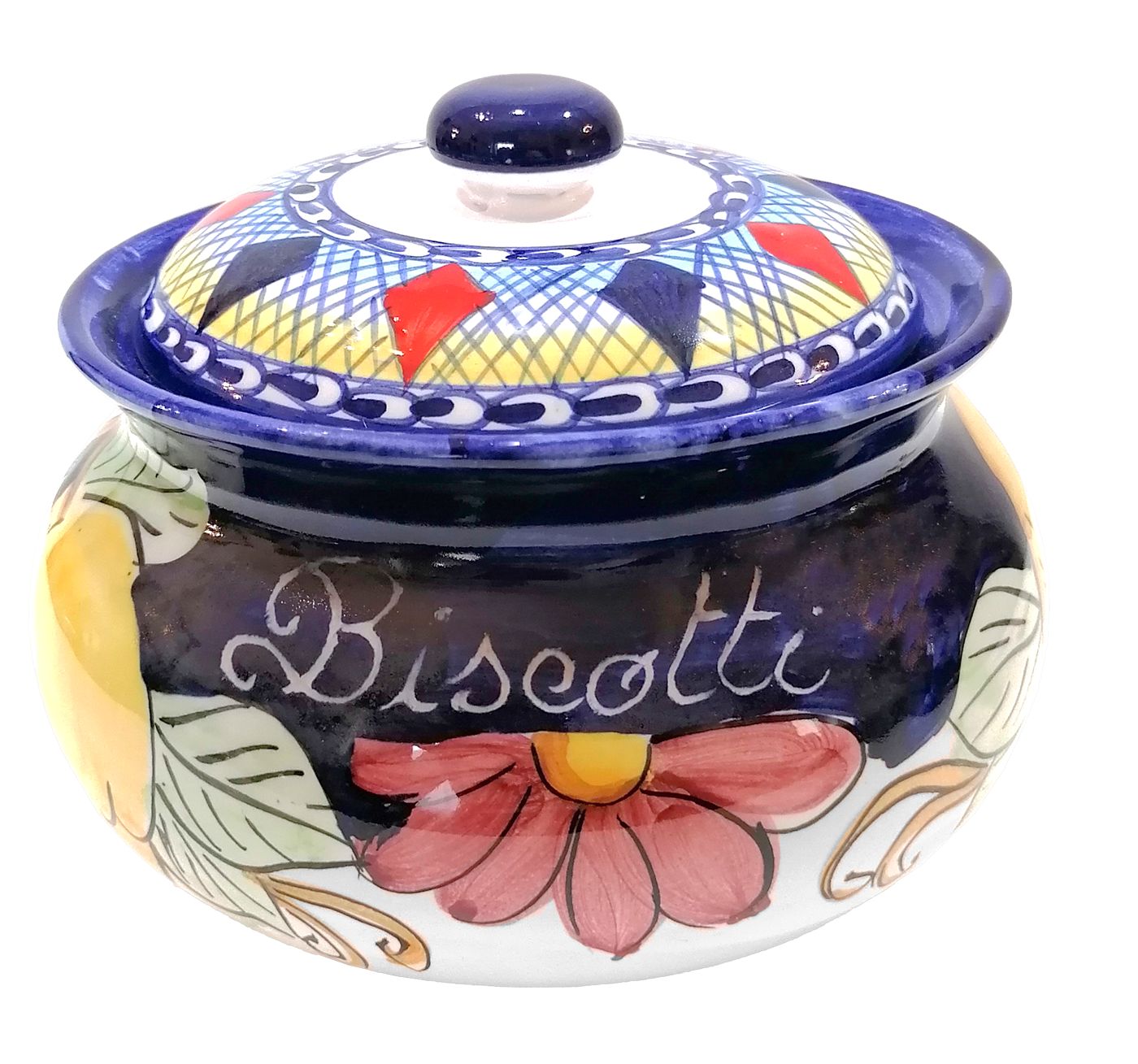 Biscottiera linea Doppio Decoro e geometrico. Ceramica di Vietri dipinta a mano.