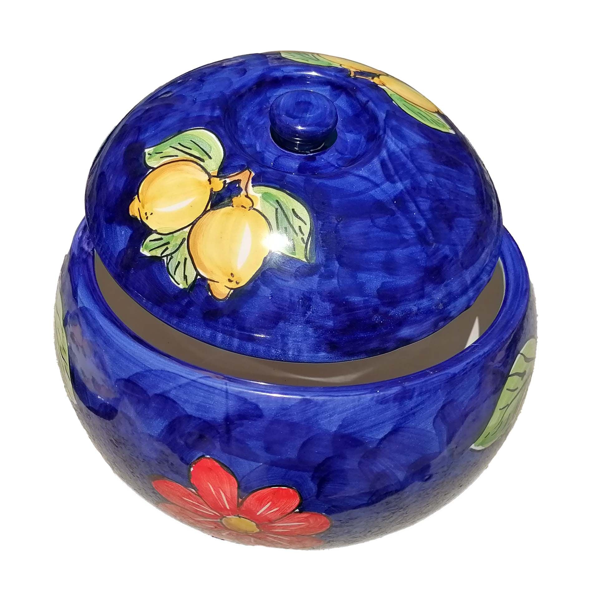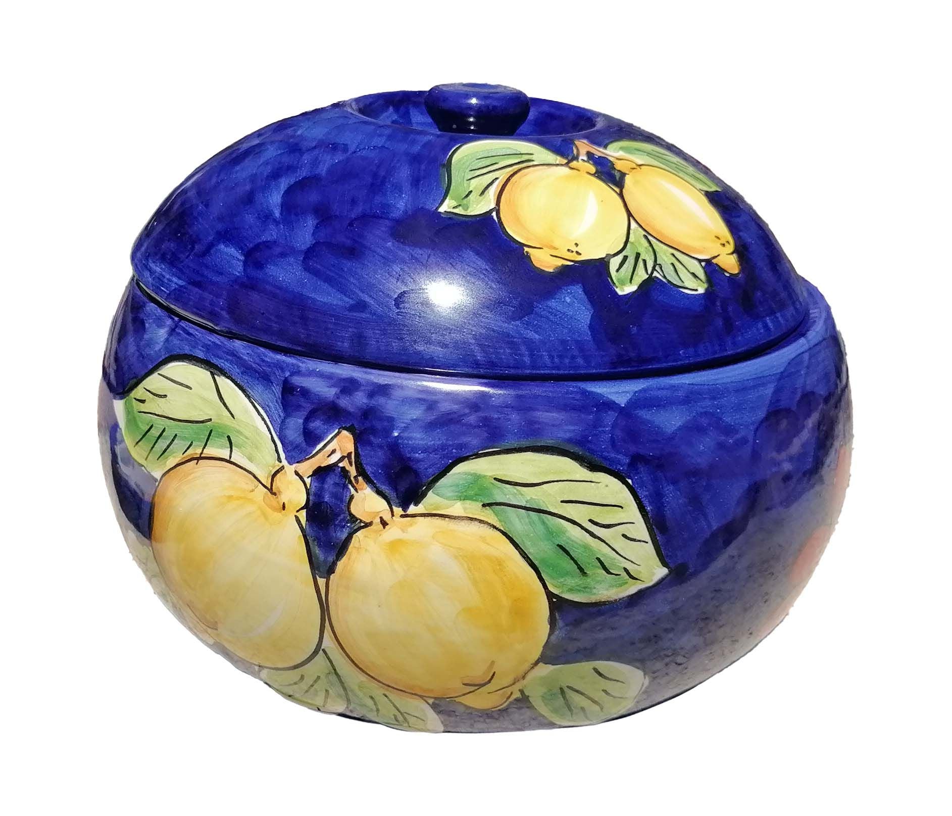 Biscottiera linea Limoni e Fiori. Ceramica di Vietri dipinta a mano.
