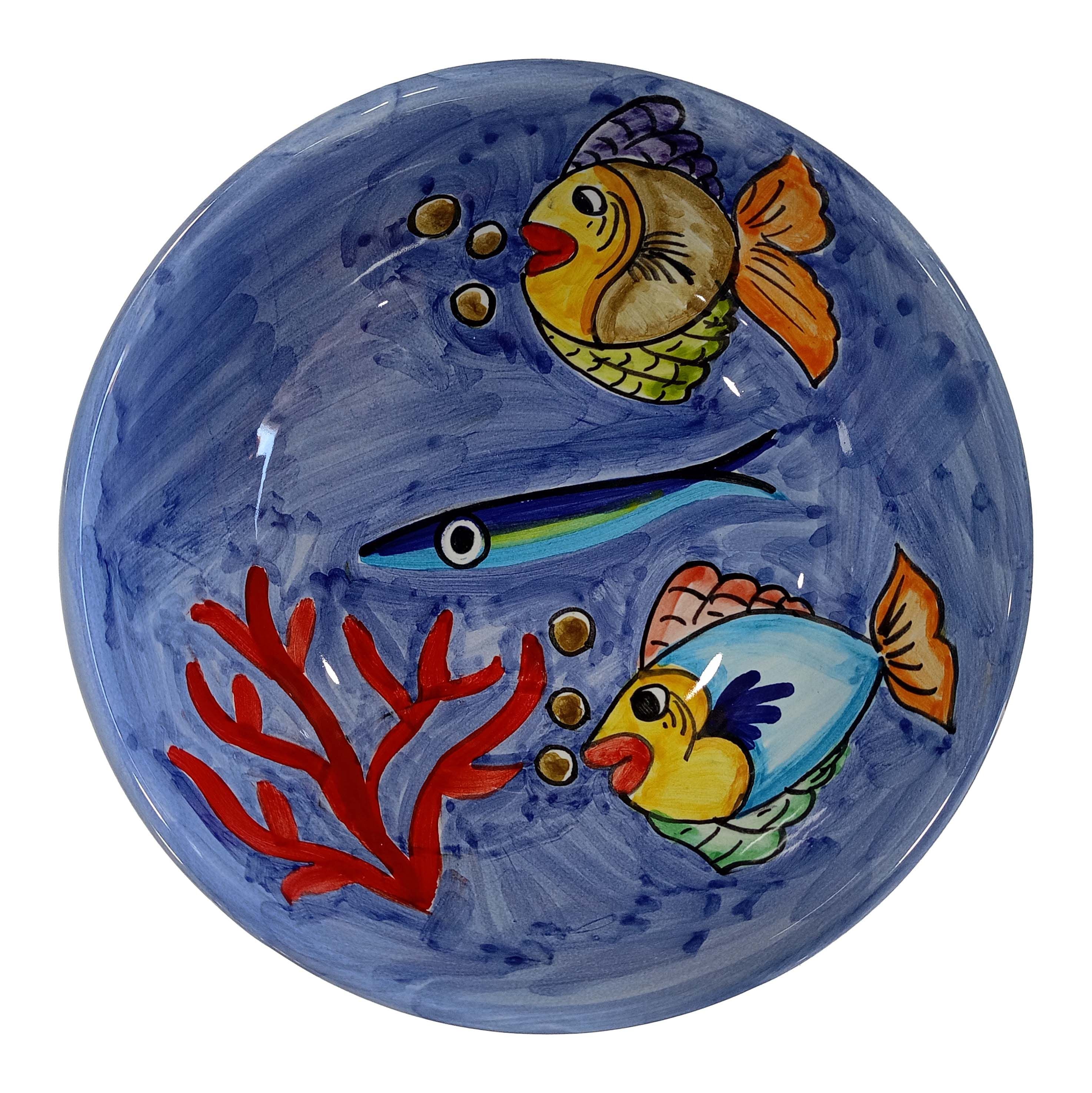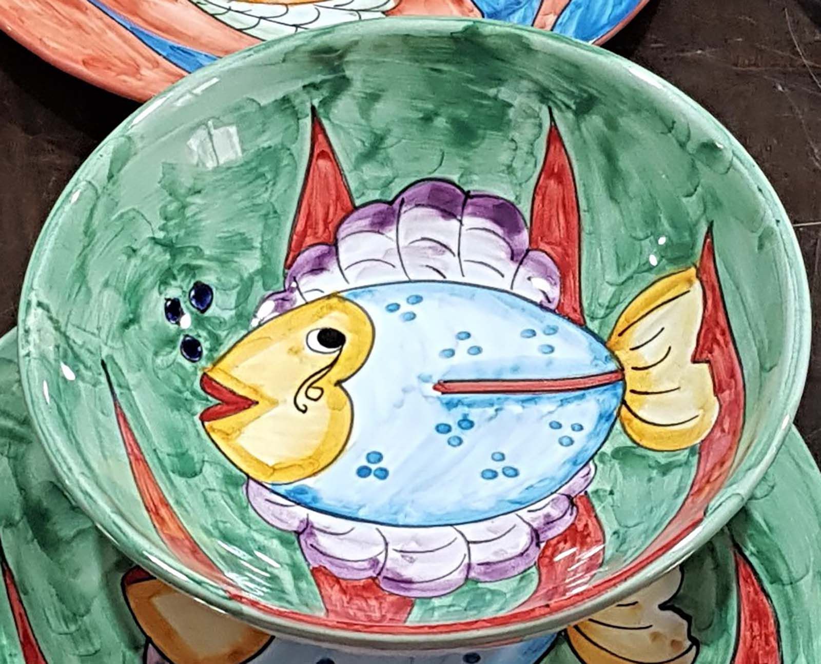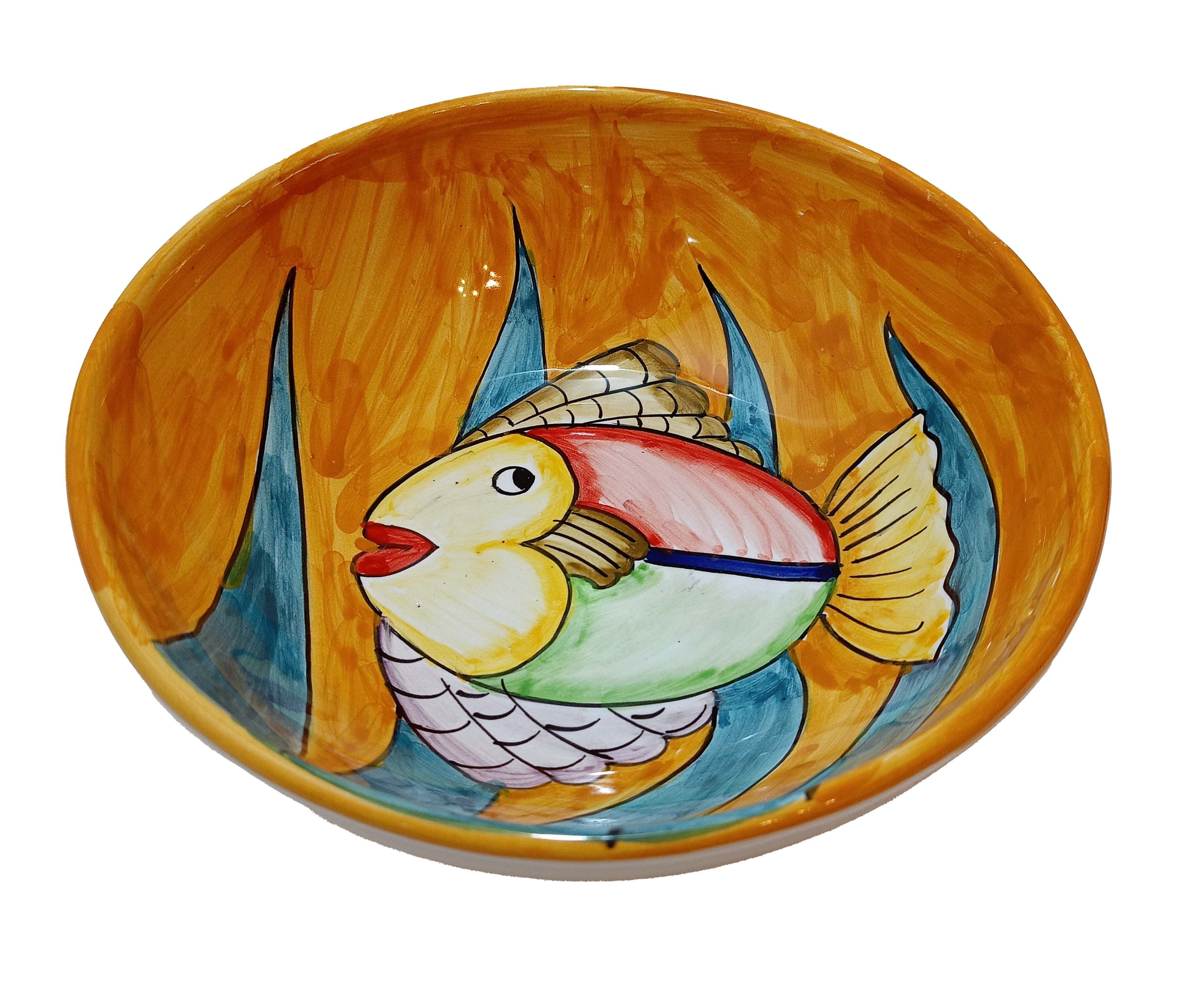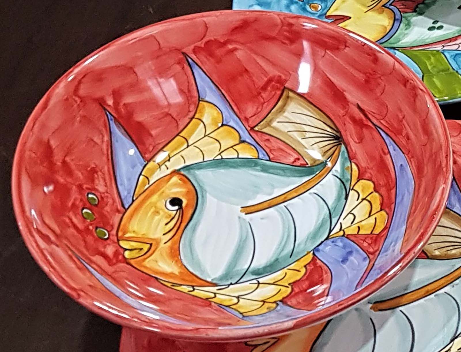 Coppa liscia piatto fondo fondina insalatiera. Linea pesci Dipinto a mano Ceramica di vietri