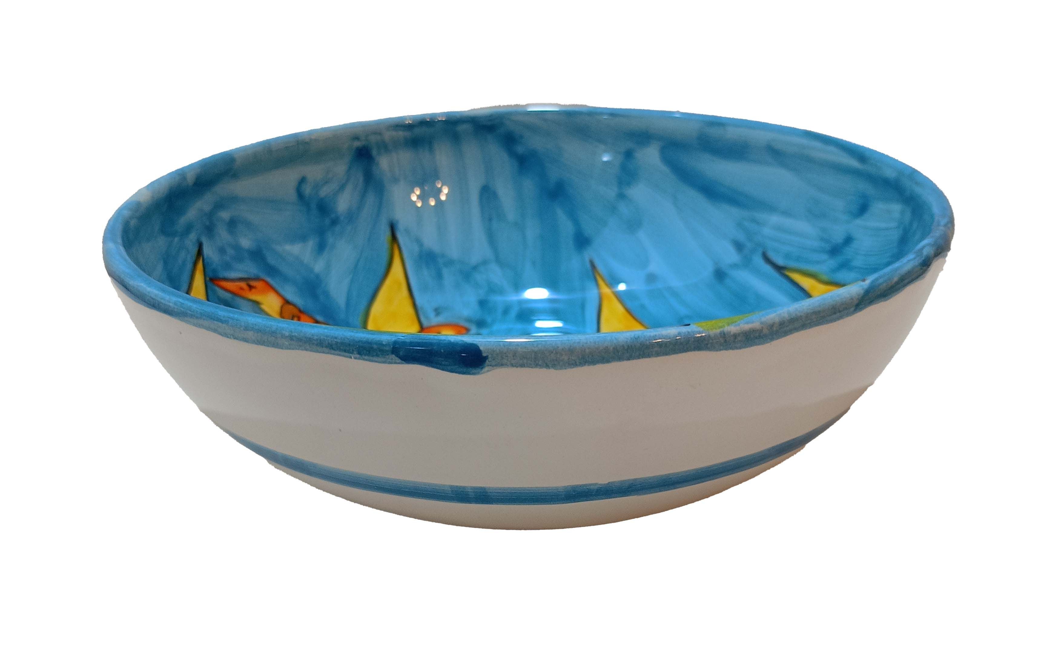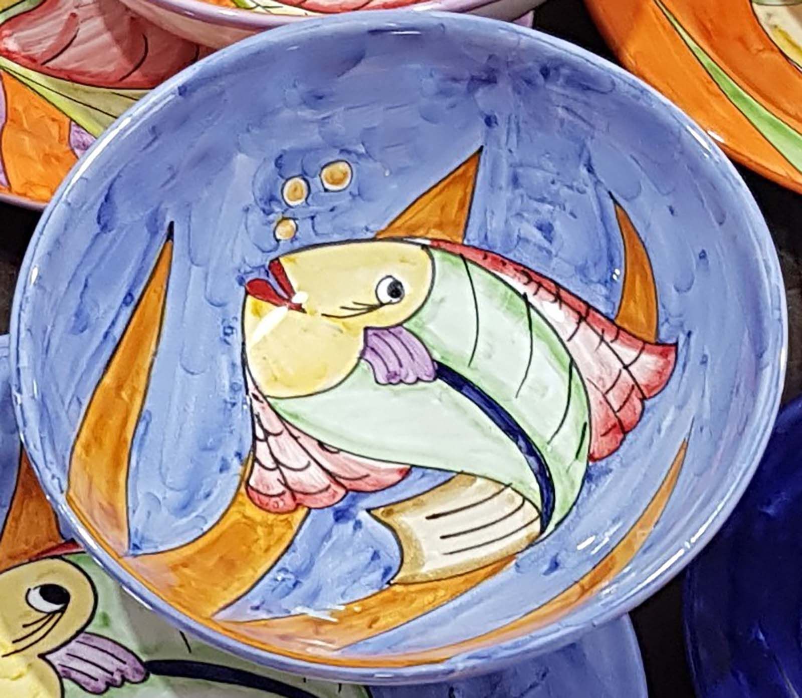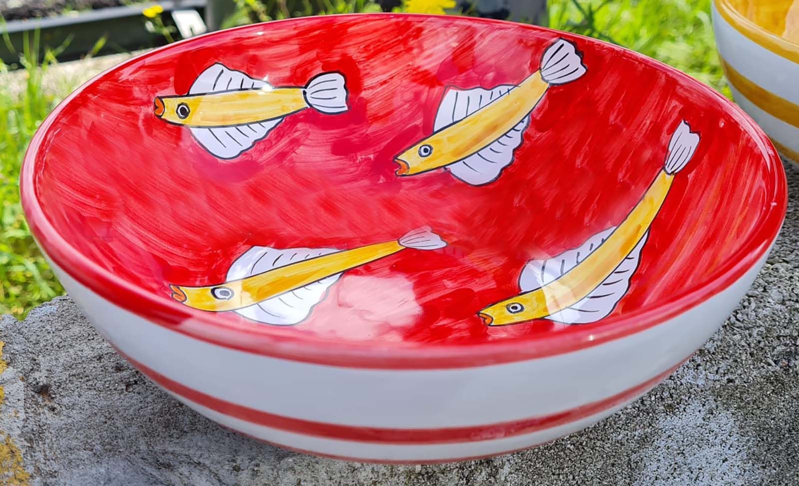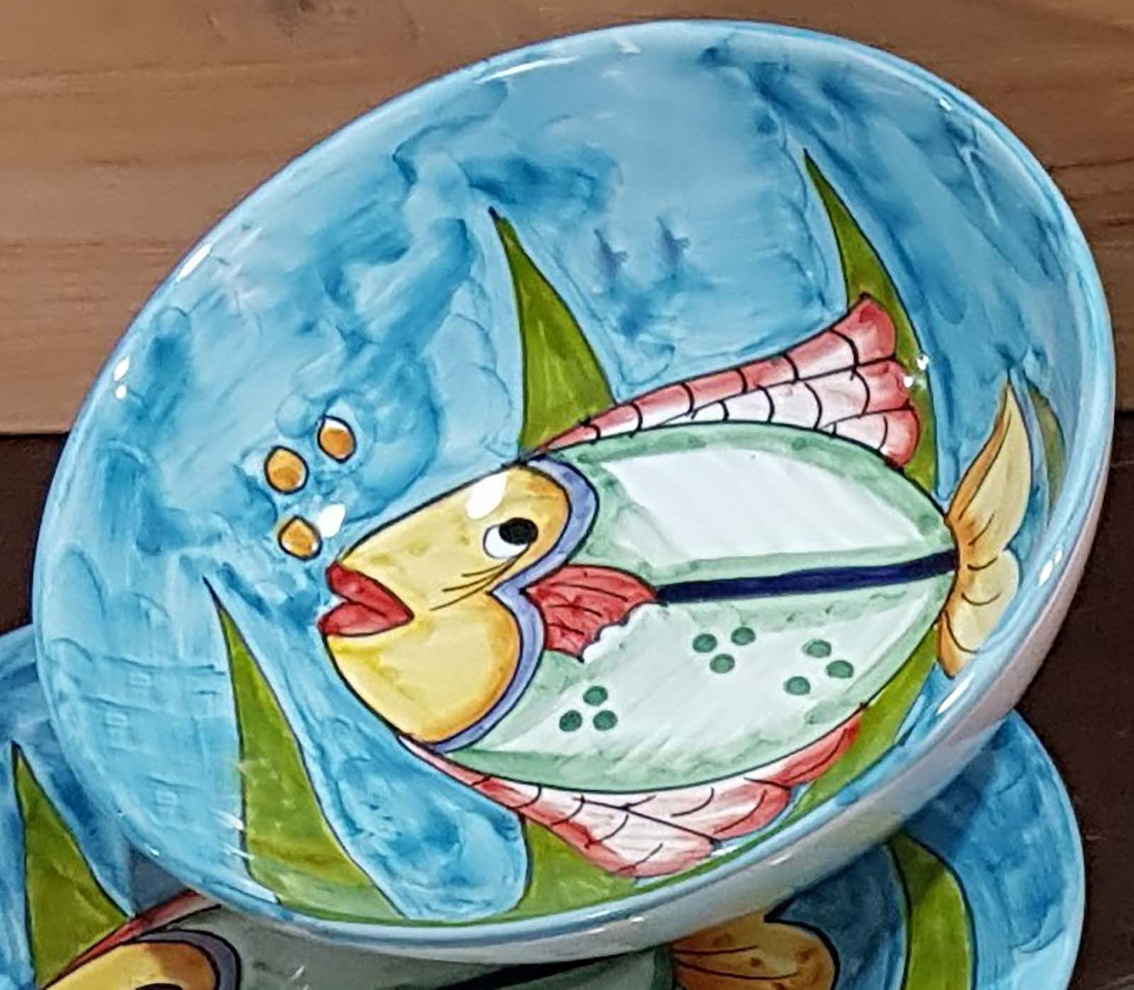 Coppa liscia piatto fondo fondina insalatiera. Linea pesci Dipinto a mano Ceramica di vietri