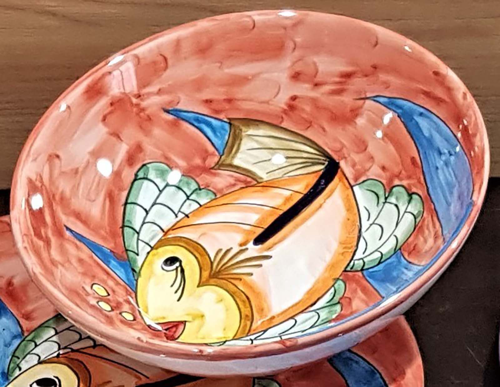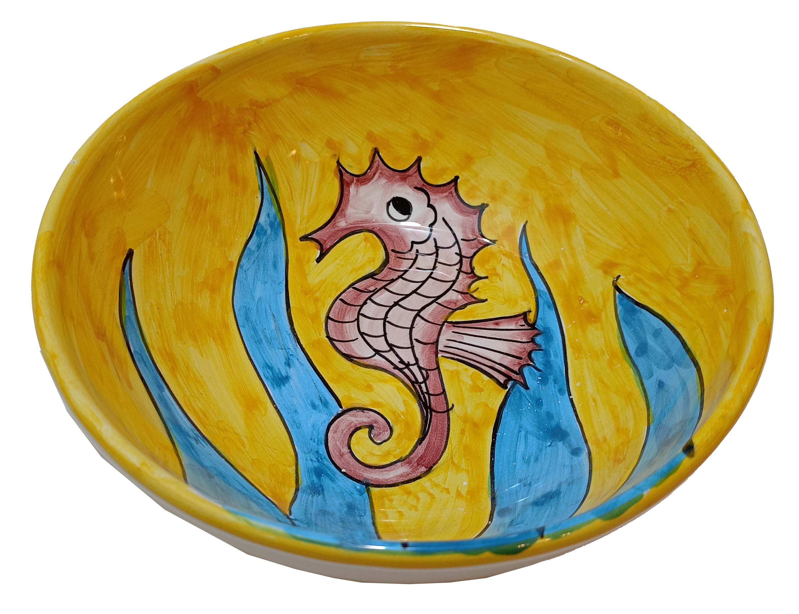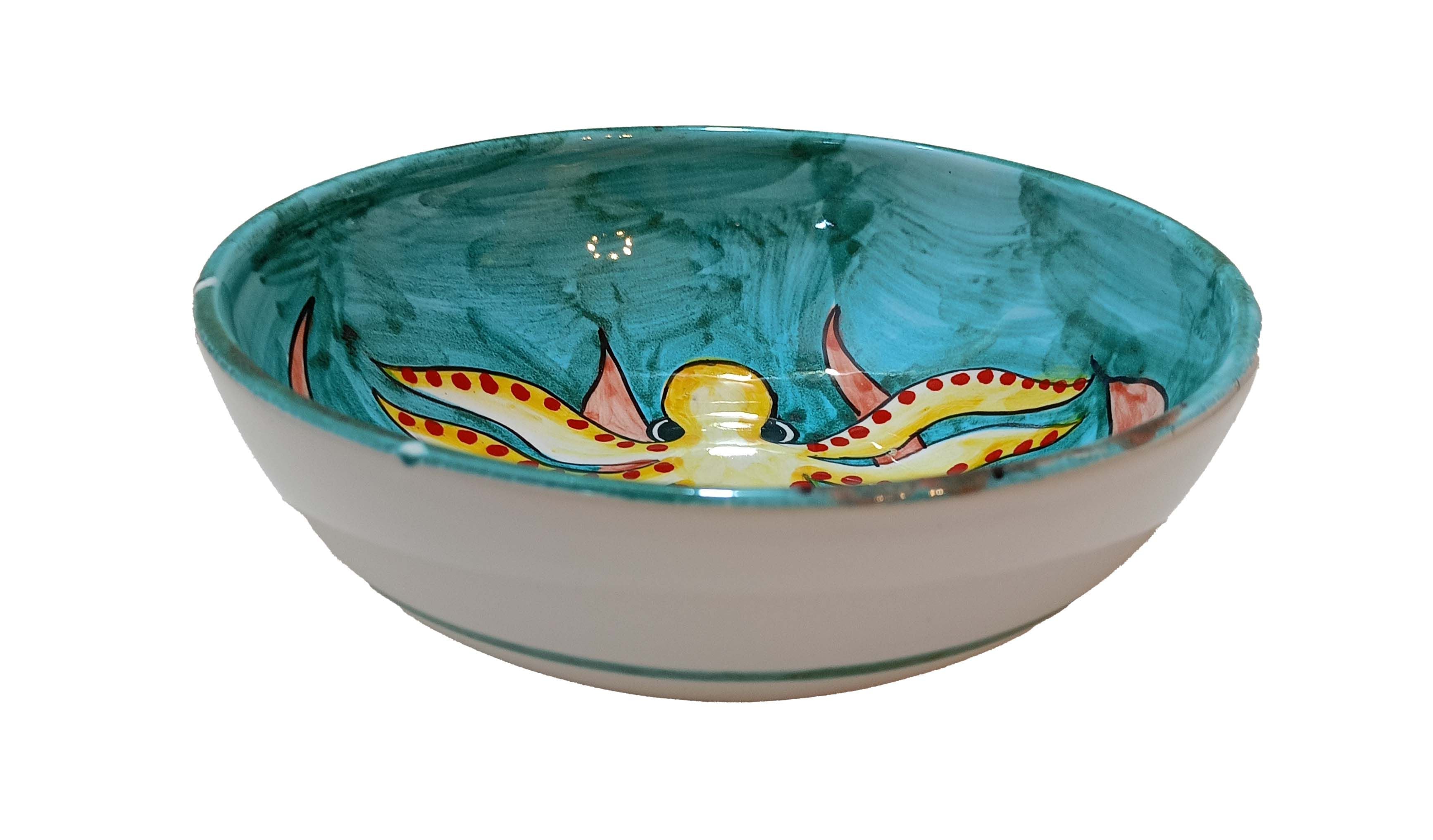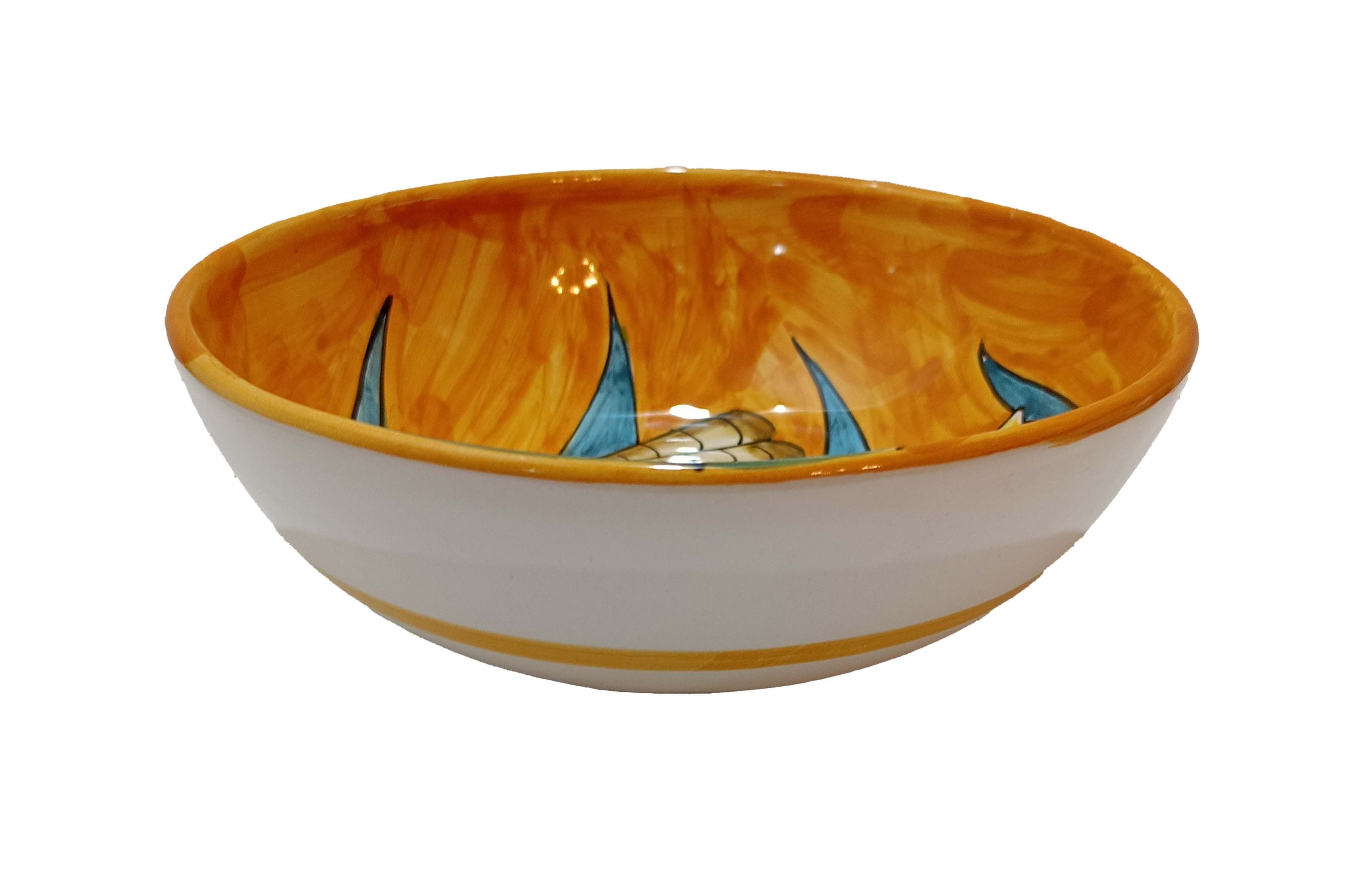 Coppa liscia piatto fondo fondina insalatiera. Linea pesci Dipinto a mano Ceramica di vietri