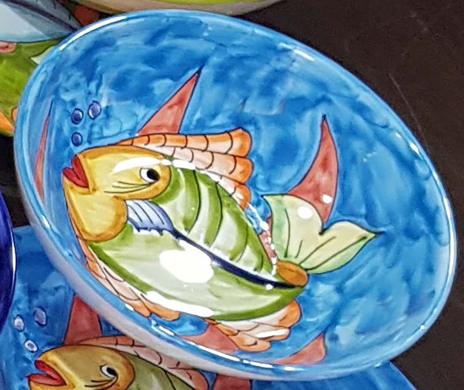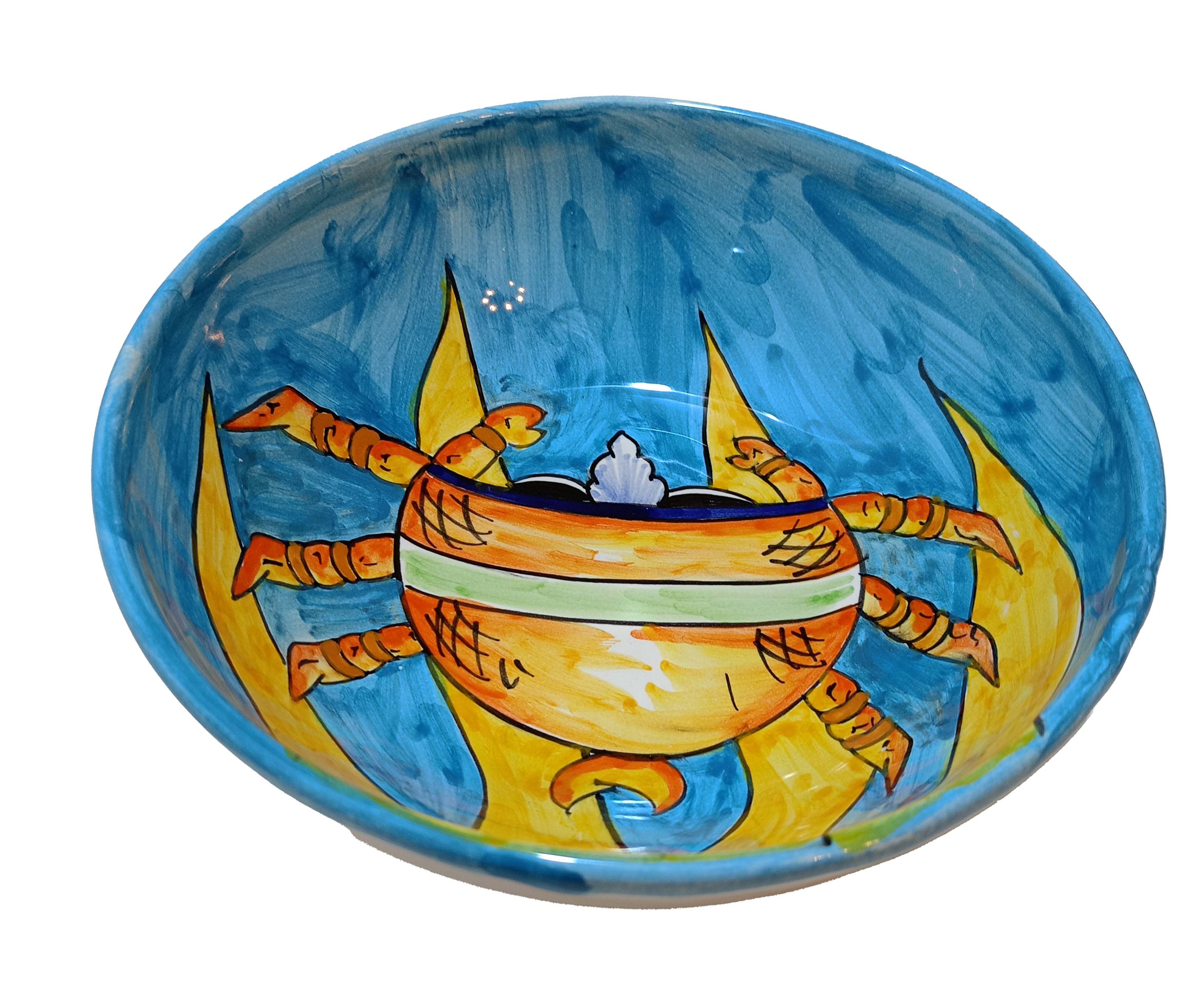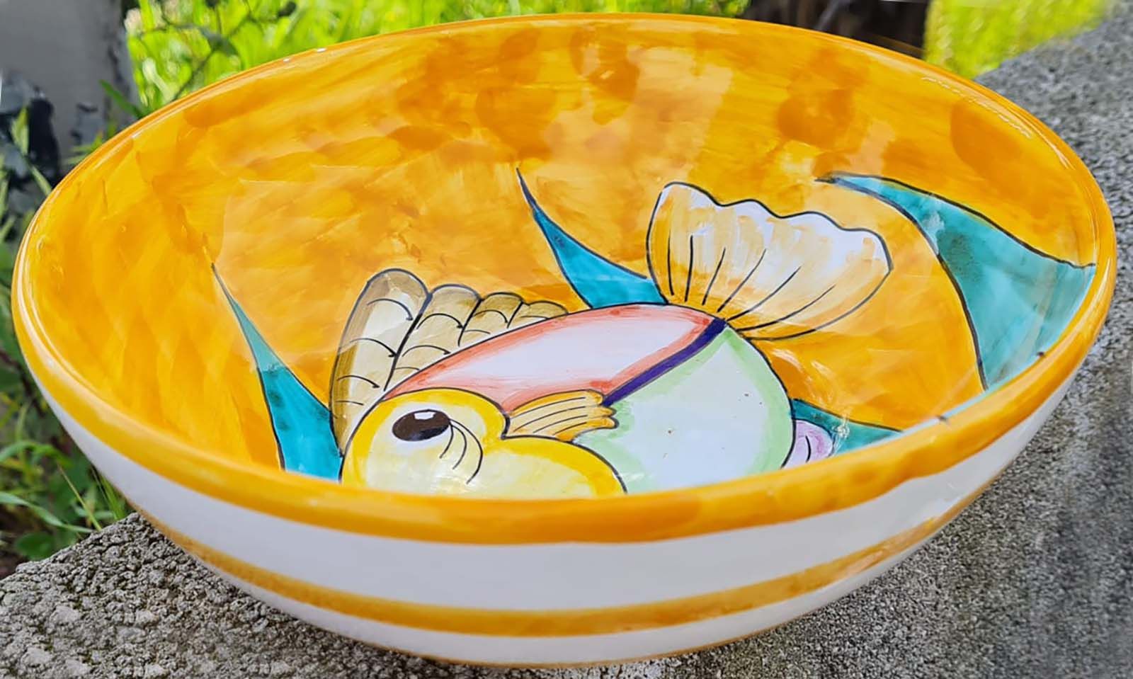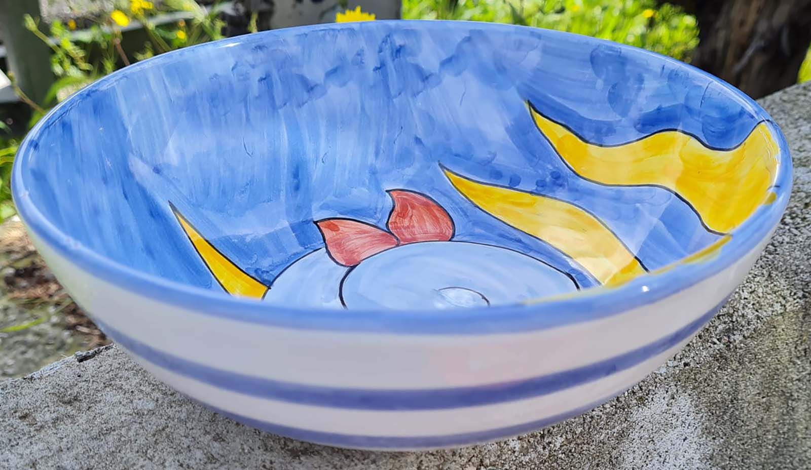 Coppa liscia piatto fondo fondina insalatiera. Linea pesci Dipinto a mano Ceramica di vietri