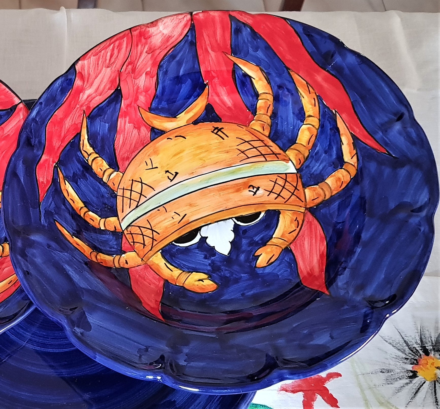 Piatto linea Pesci, soggetto granchio fondo Blu .Ceramica di Vietri - disponibile fondo, piano, frutta/dolce o sottopiatto