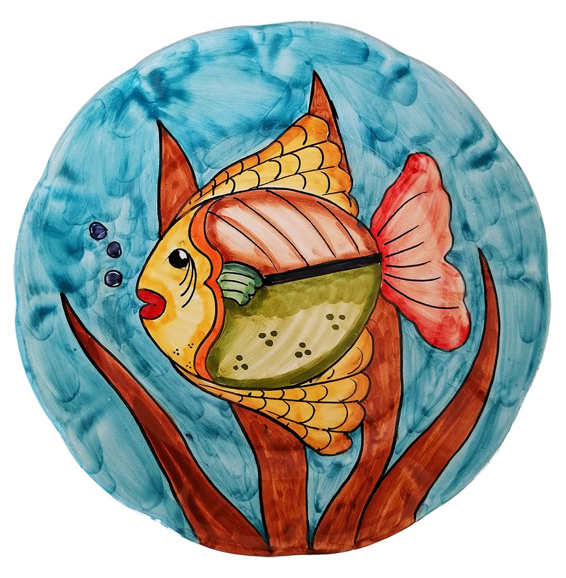 Piatto linea Pesci, soggetto pesce fondo azzurro . Ceramica di Vietri - fondo, piano, frutta/dolce o sottopiatto