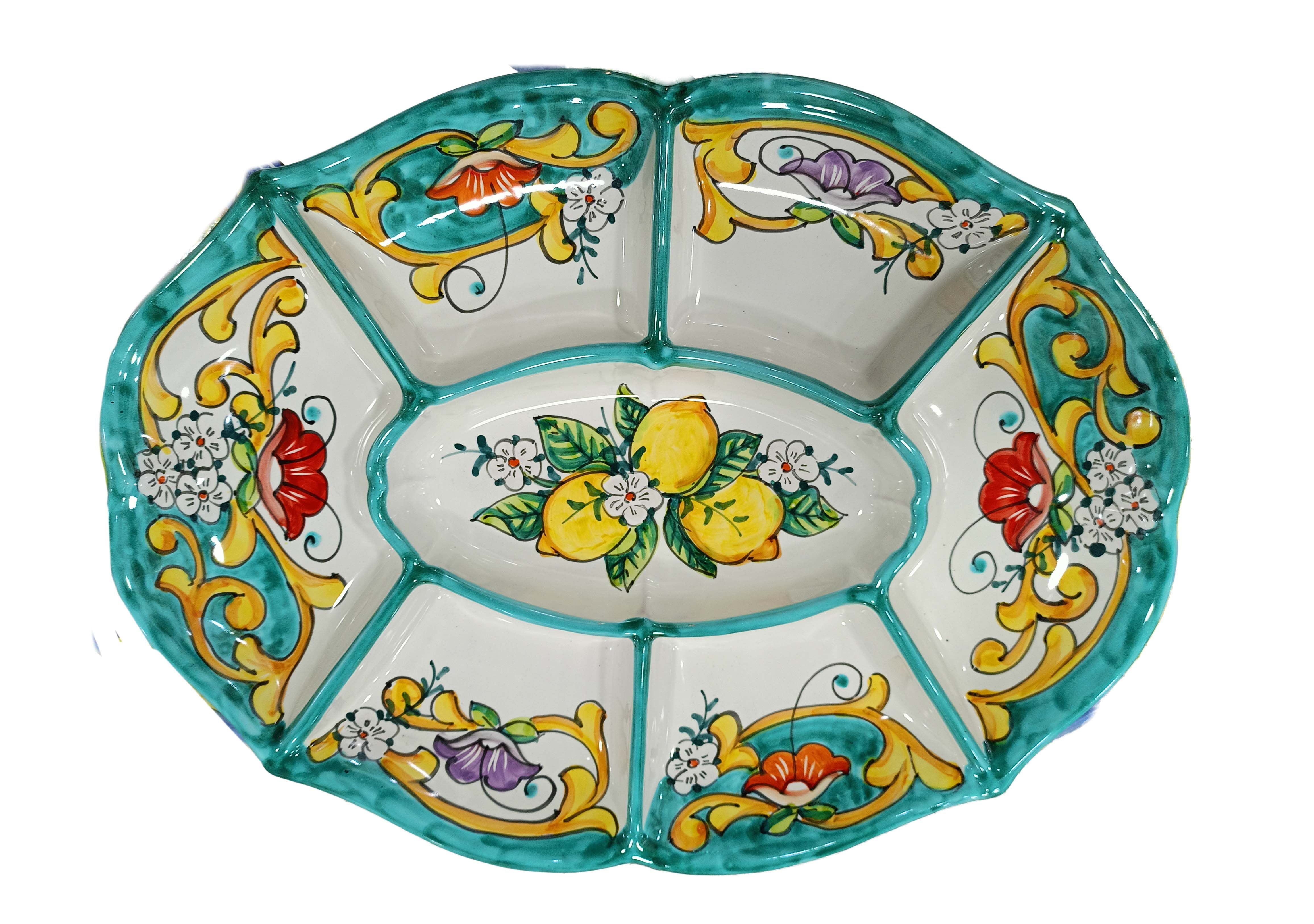 Antipastiera Cena Fredda 7 scomparti linea Limoni e Fiori. Ceramica di Vietri dipinta a mano