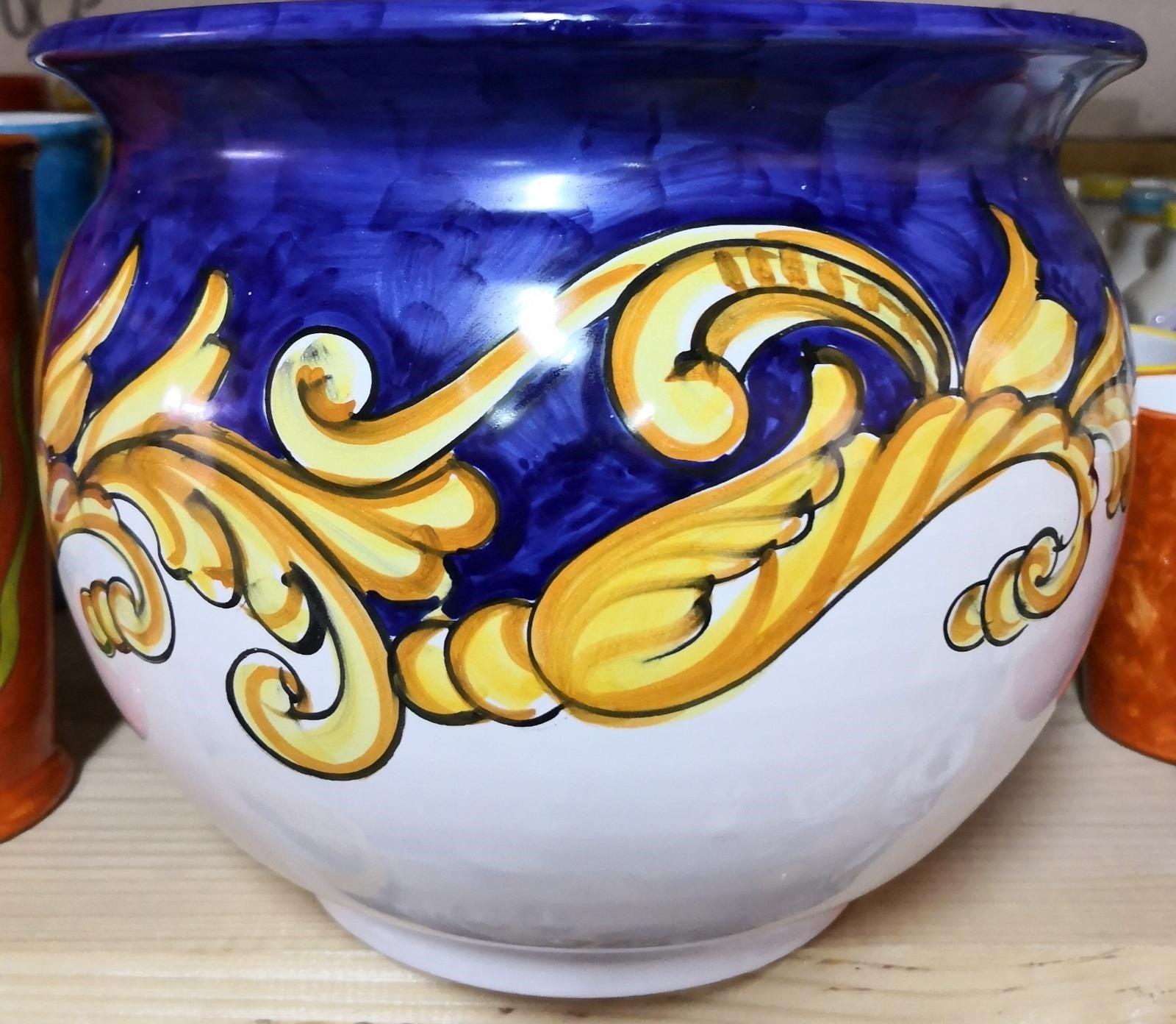 Cachepot Portapianta. Linea Barocco Bordo Blu. Ceramica di Vietri. Dipinta a mano.