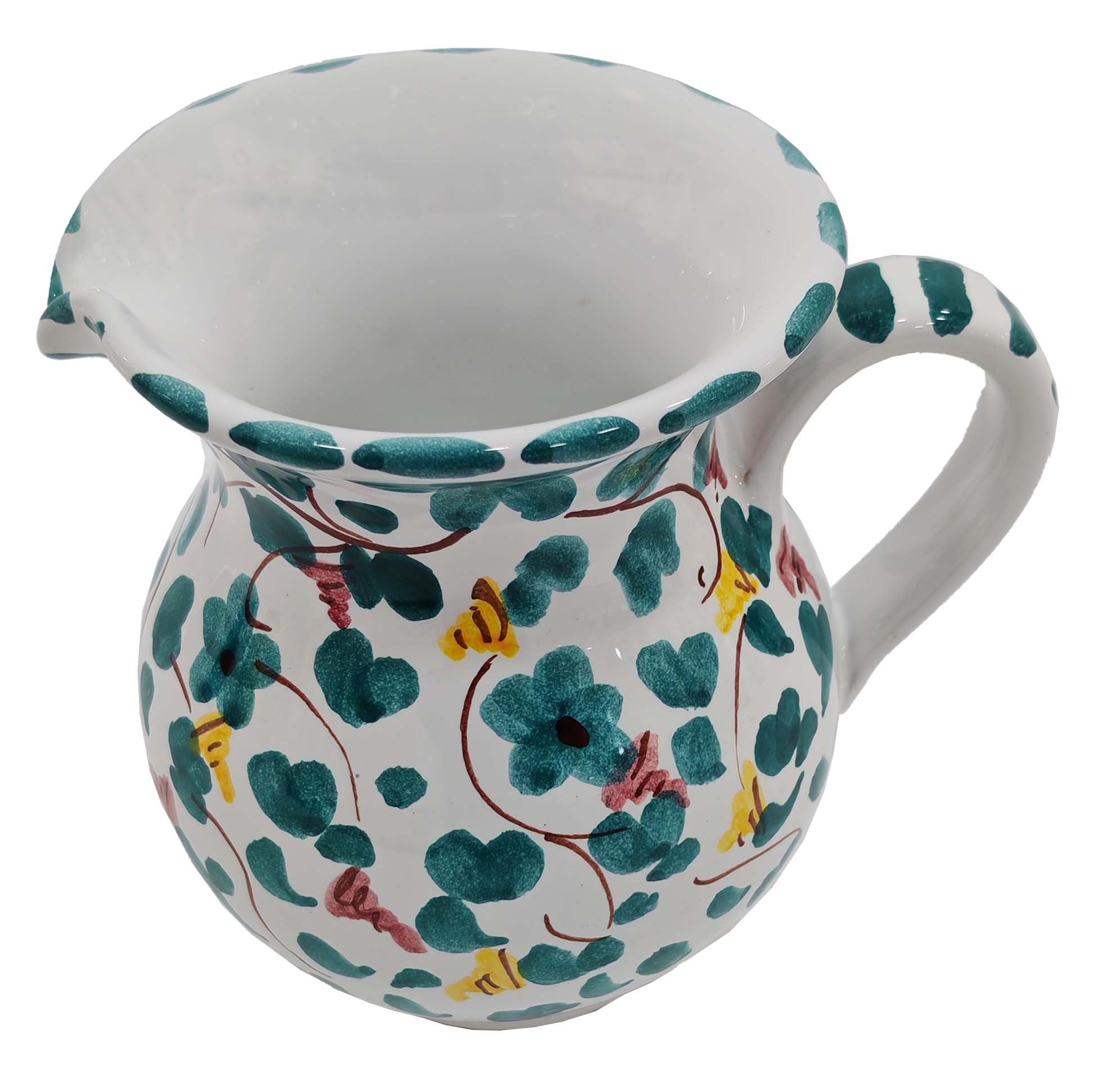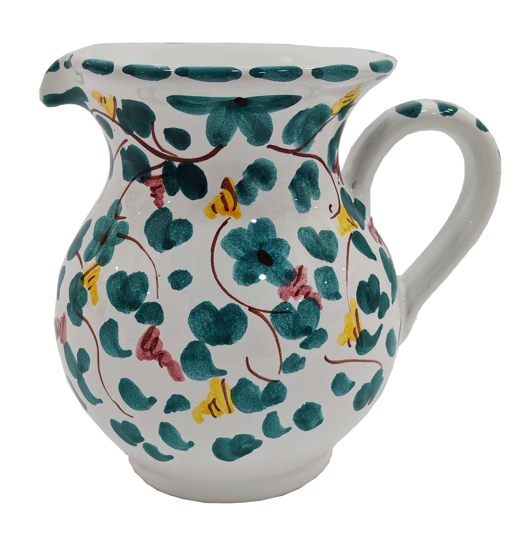 Brocca Panciuta. Linea Fiori. Decoro Bigmama. Ceramica di Vietri. Dipinta a mano.