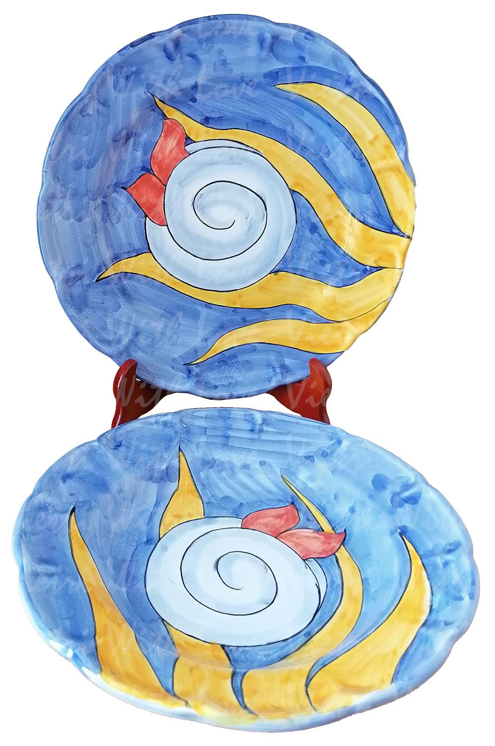 Piatti in ceramica di Vietri linea Pesci Chiocciola- Bis fondo e piano