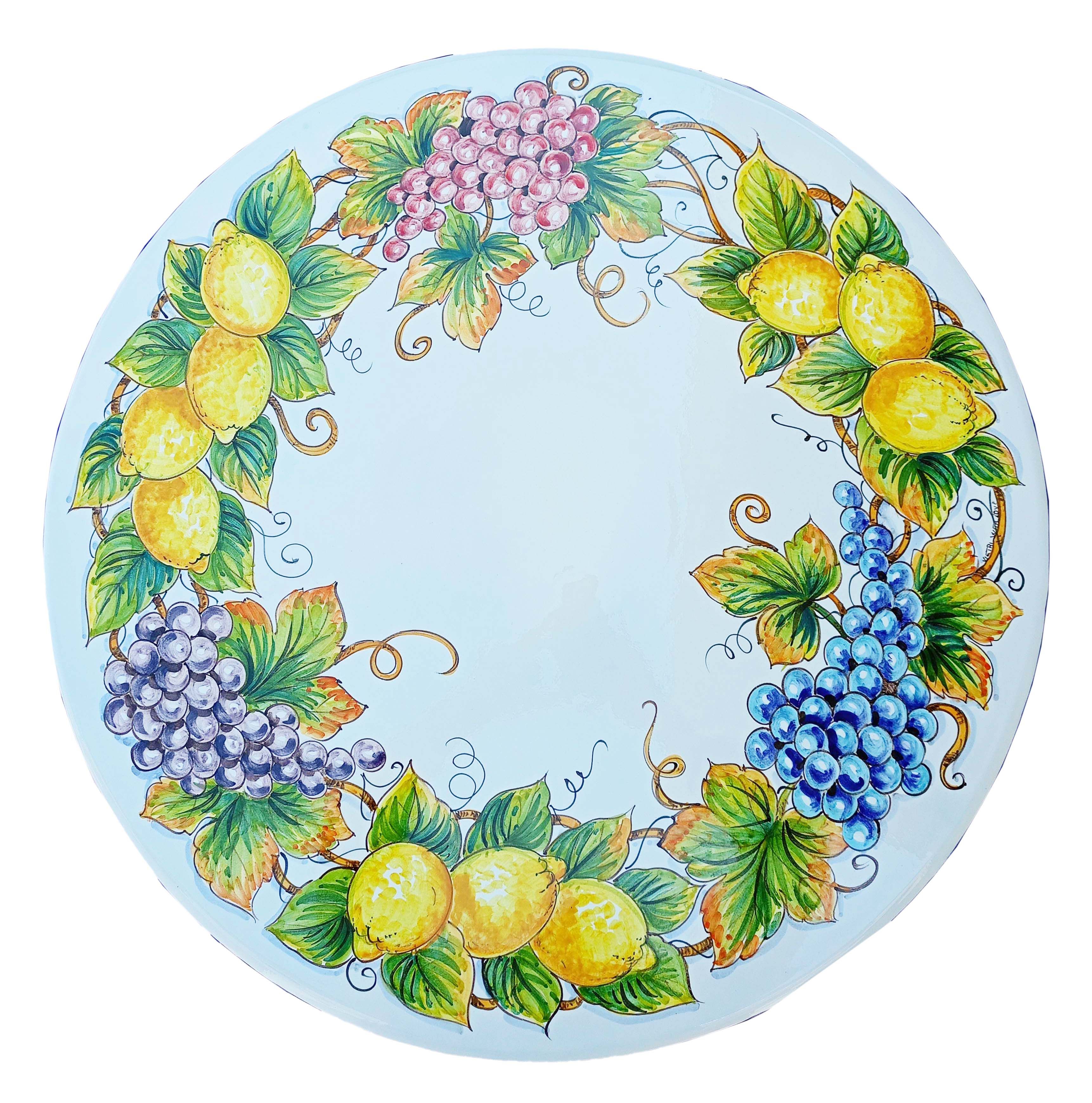 Tavolo in pietra lavica ceramizzata. Linea Limoni e Frutta. dipinto a mano. Ceramica di Vietri