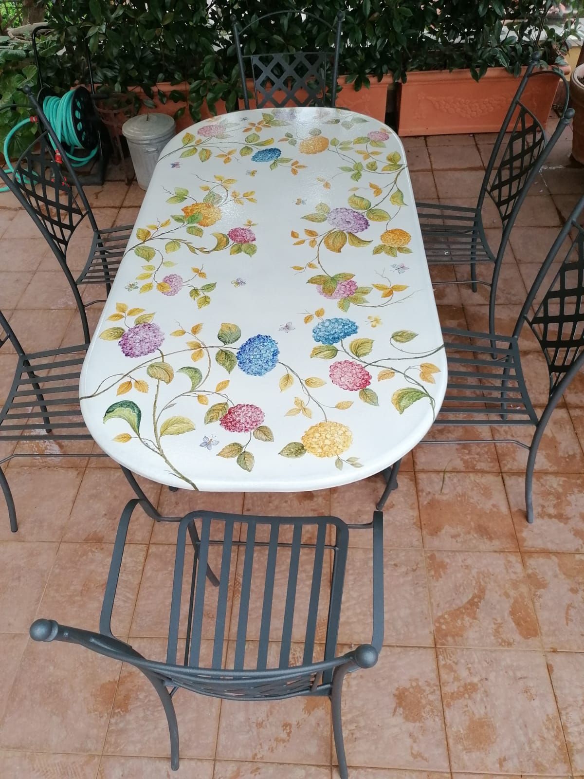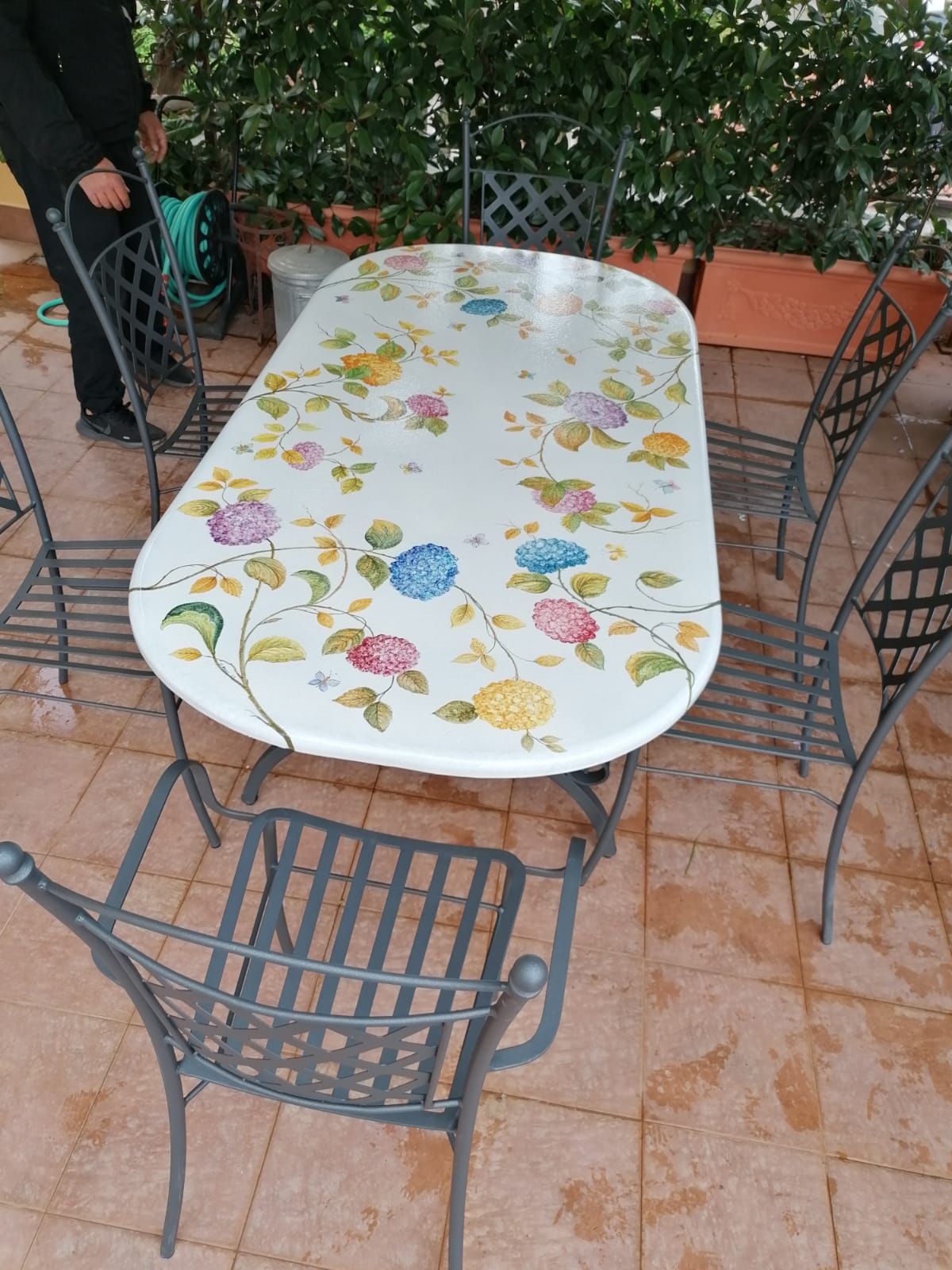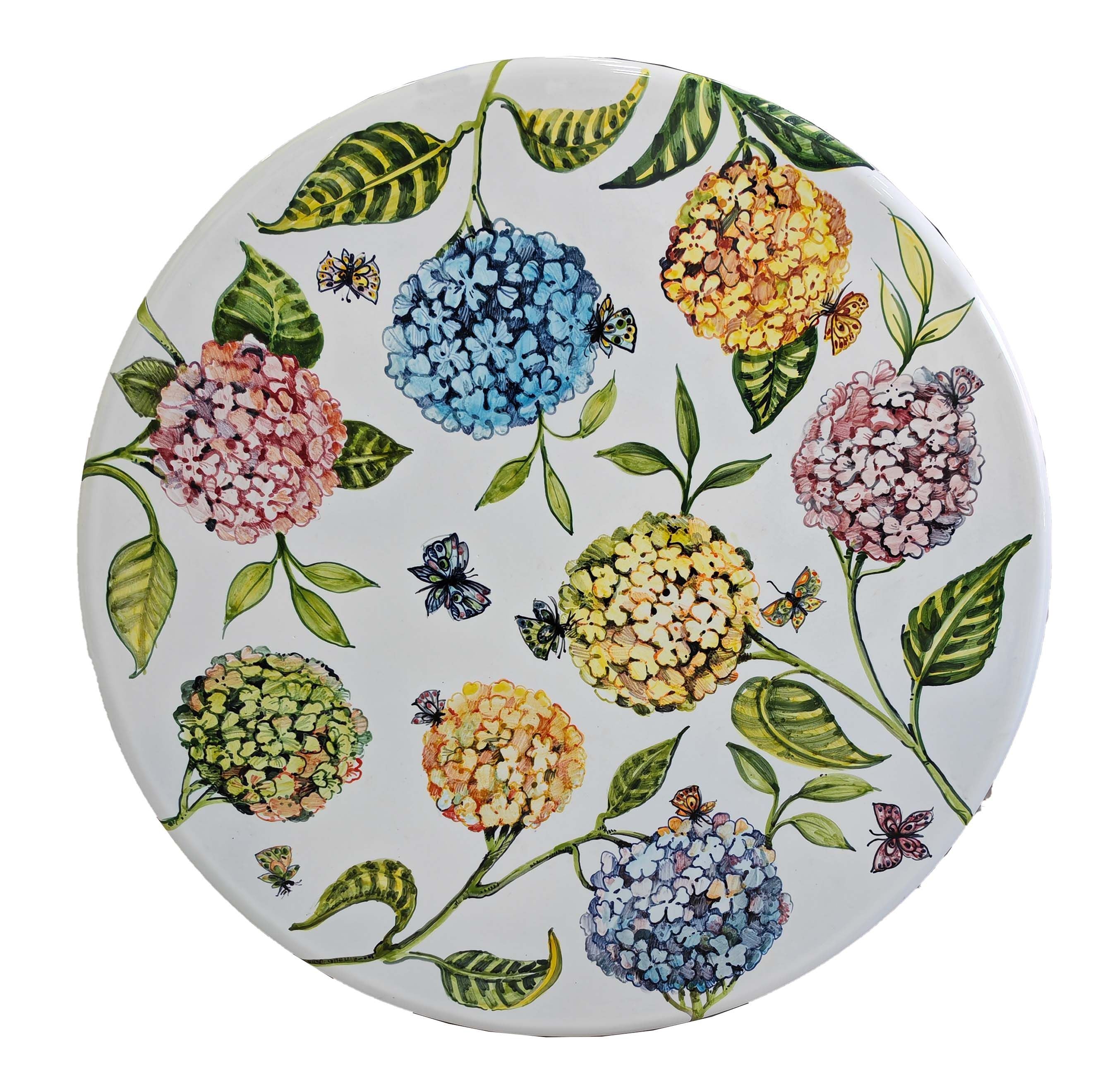 Tavolo in pietra lavica ceramizzata. Ortensie. dipinto a mano. Ceramica di Vietri