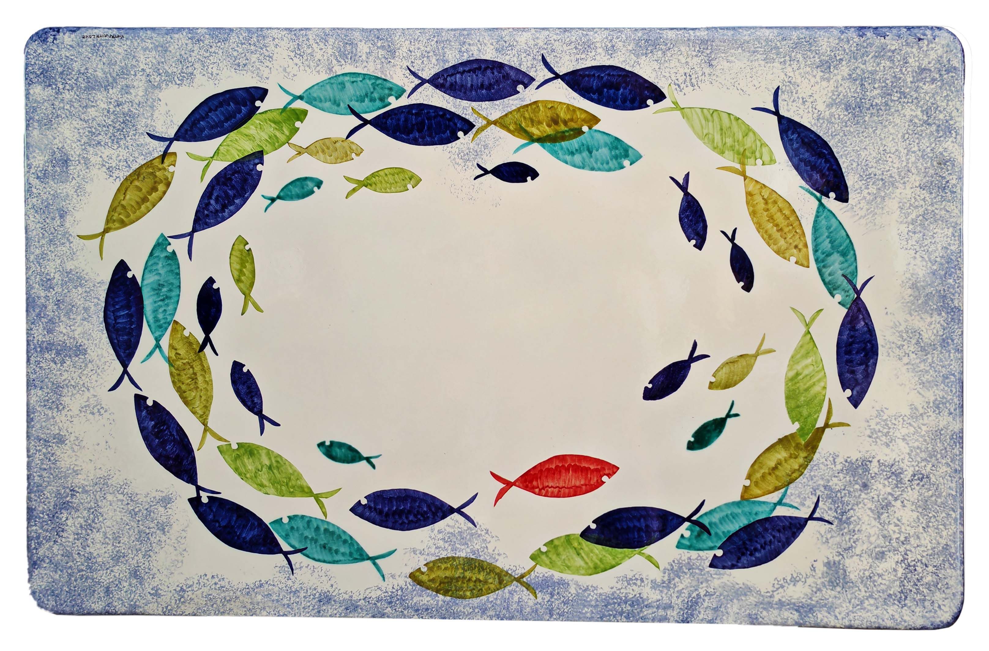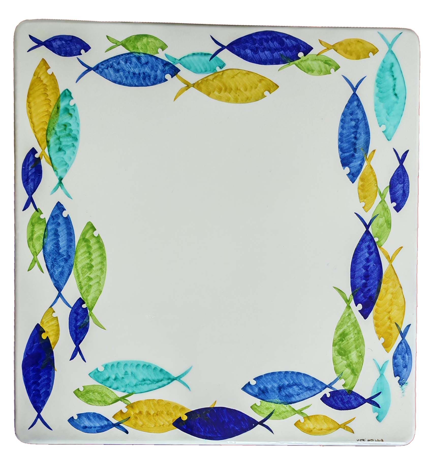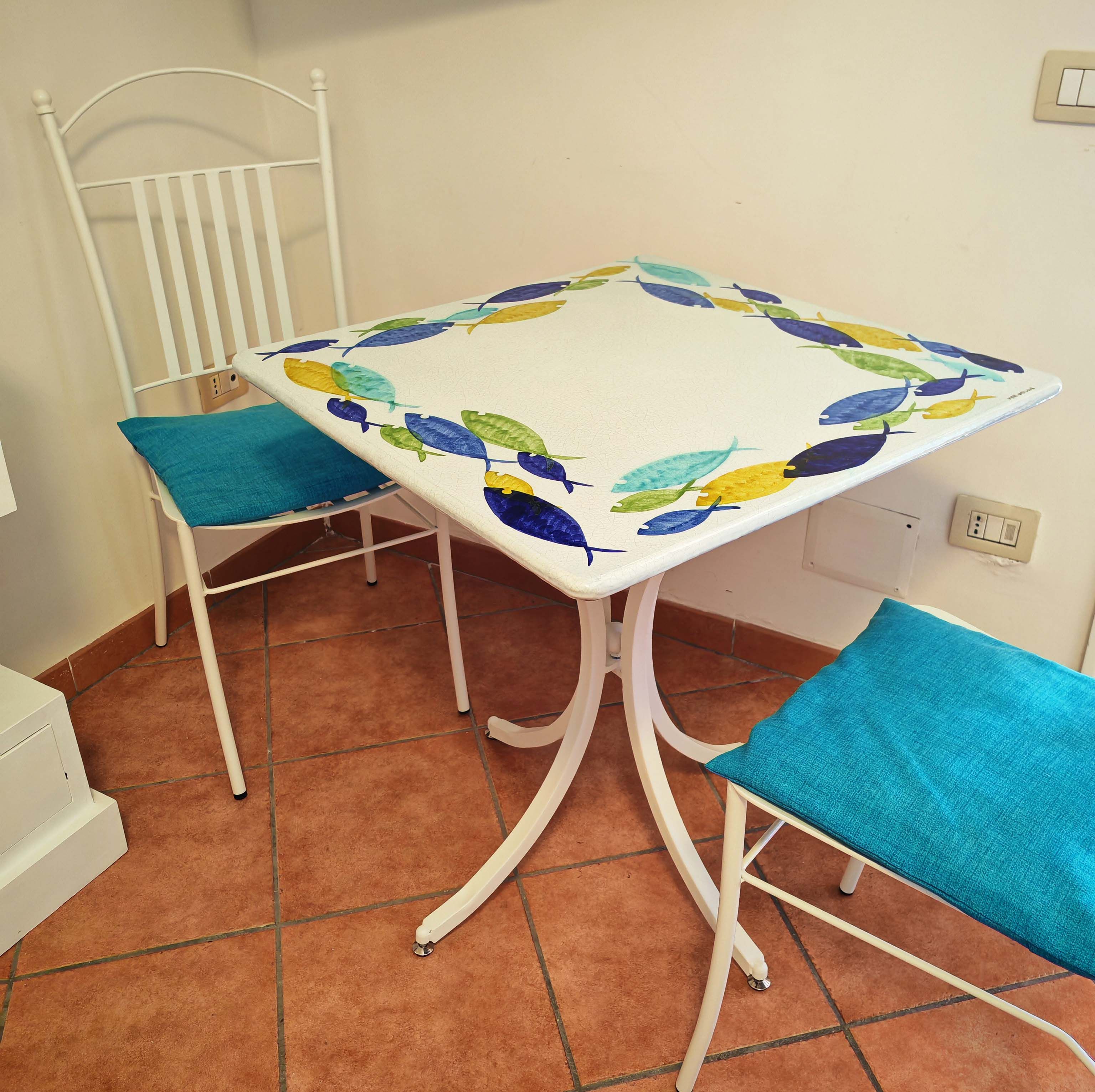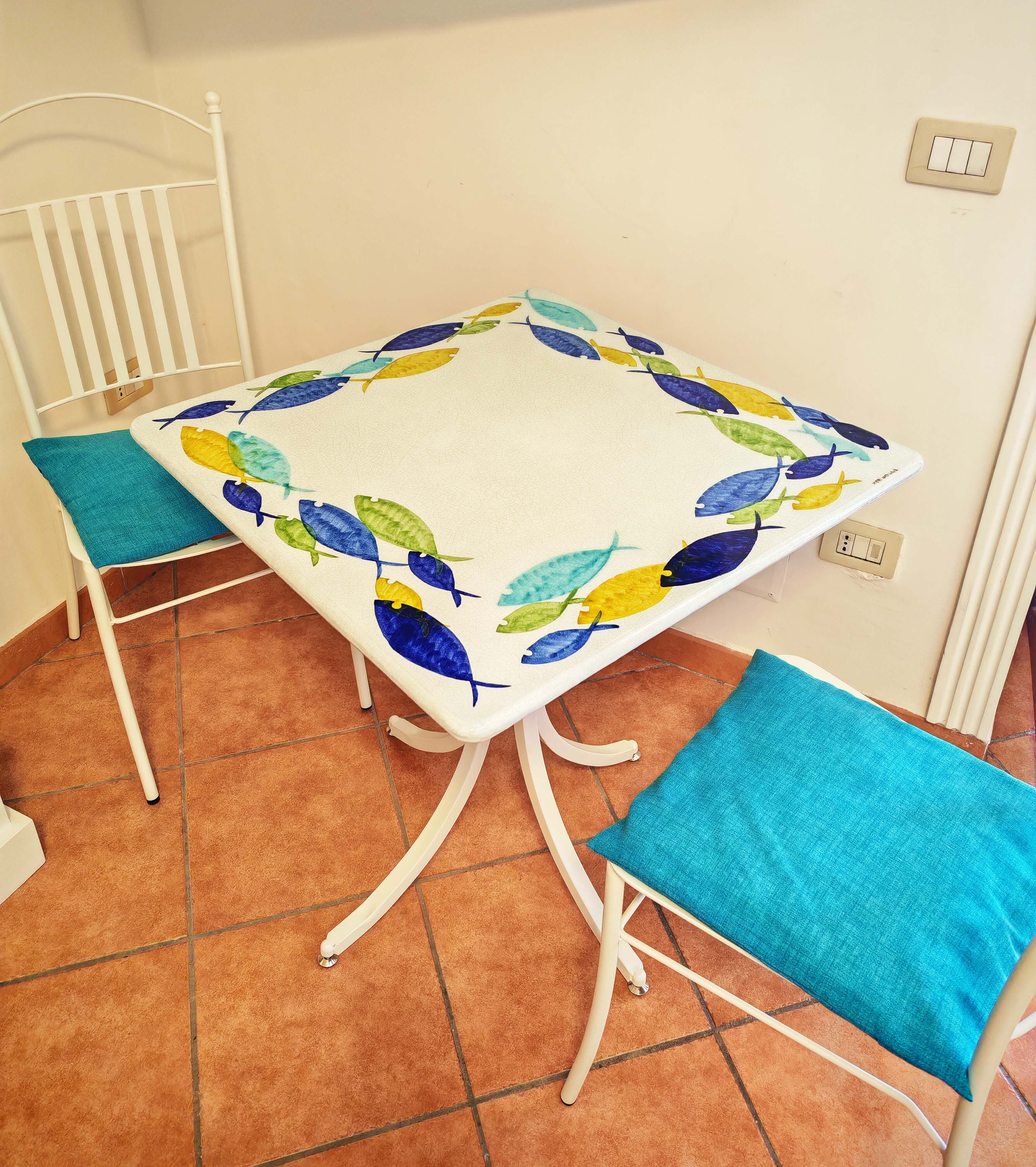 Tavolo in pietra lavica ceramizzata. Pesci Circolari. dipinto a mano. Ceramica di Vietri