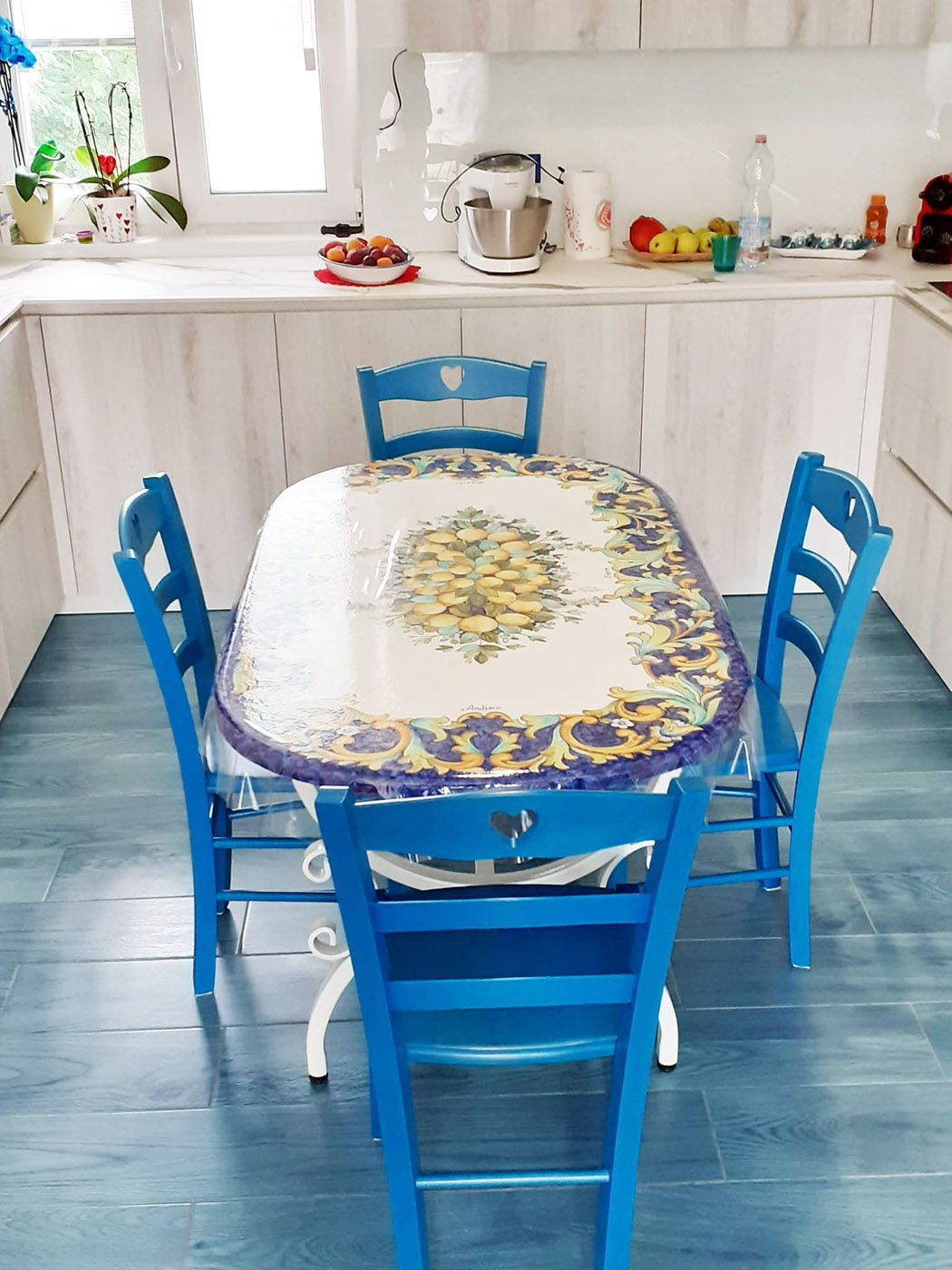 Ogni pezzo è unico, realizzato artigianalmente in ceramica di Vietri e cotto ad alte temperature per garantire una resistenza eccezionale a graffi, calore, gelo e raggi UV. Perfetto per arredare con stile sia ambienti interni che spazi esterni come terrazze e giardini.